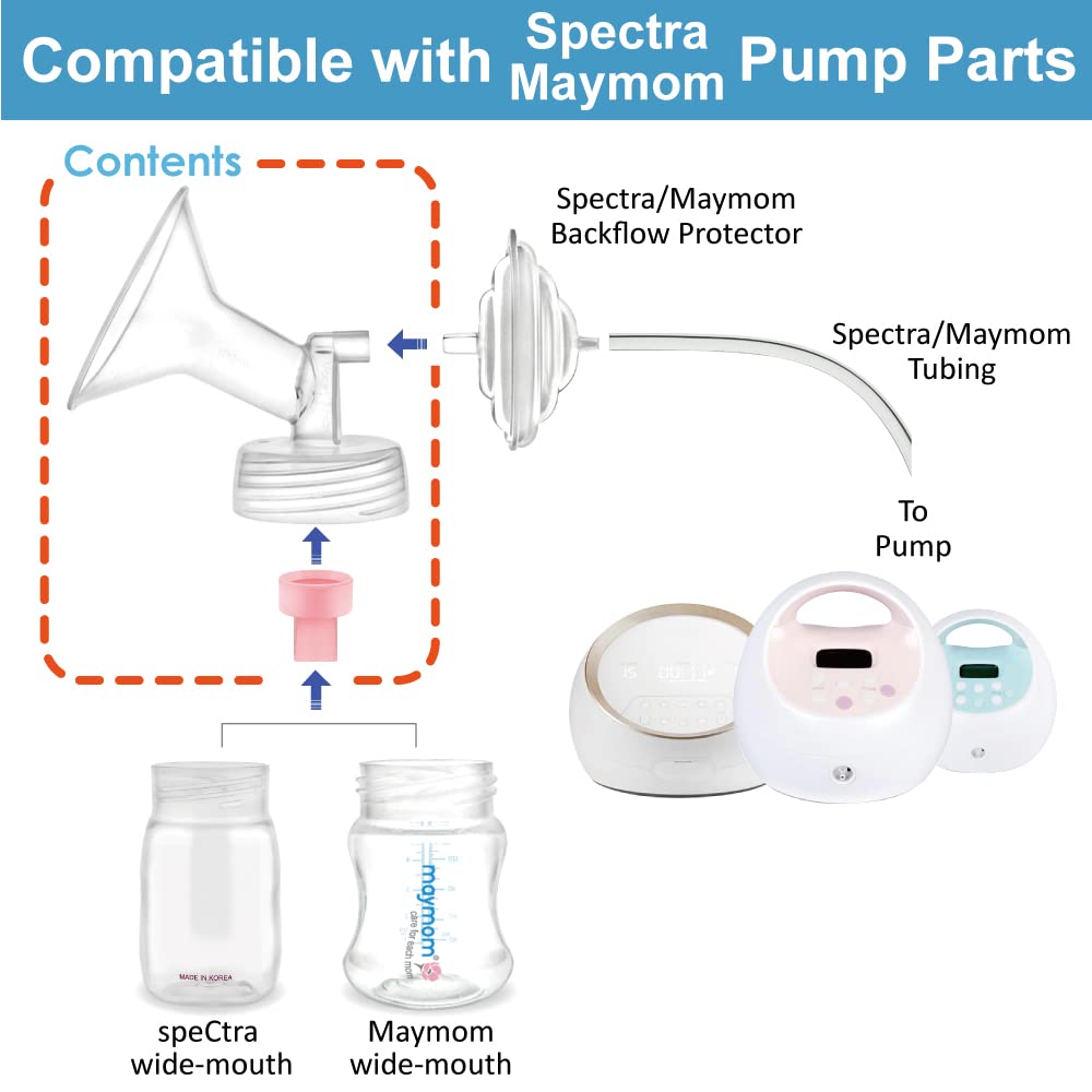 - Q: What does the Maymom flange package include? A: The package includes two 17 millimeter wide mouth flanges and valves for use with Spectra S1, S2, and Plus pumps, as well as other compatible models.