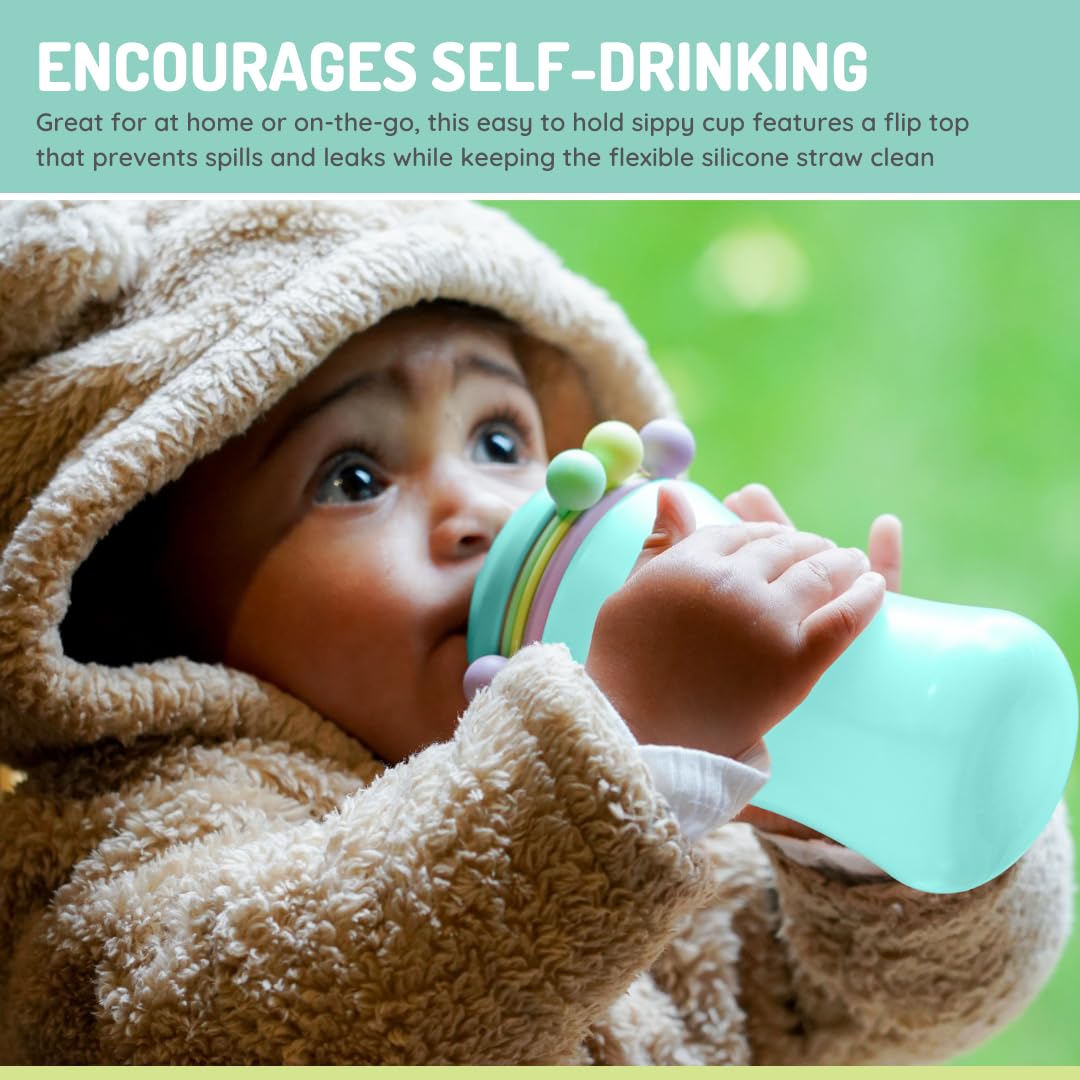 - Q: Can the sippy cup be used as a toy? A: Yes, the sippy cup doubles as a fun toy, allowing your child to spin, count, and play with the multicolored beads.