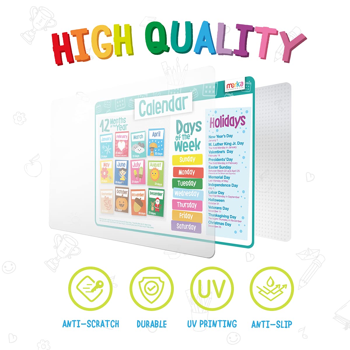 - Q: What are the unique features of the merka educational placemats? A: Unique features include educational content designed by teachers, easy-to-clean silicone material, non-slip backing, and a variety of topics that promote learning in a fun and engaging way.