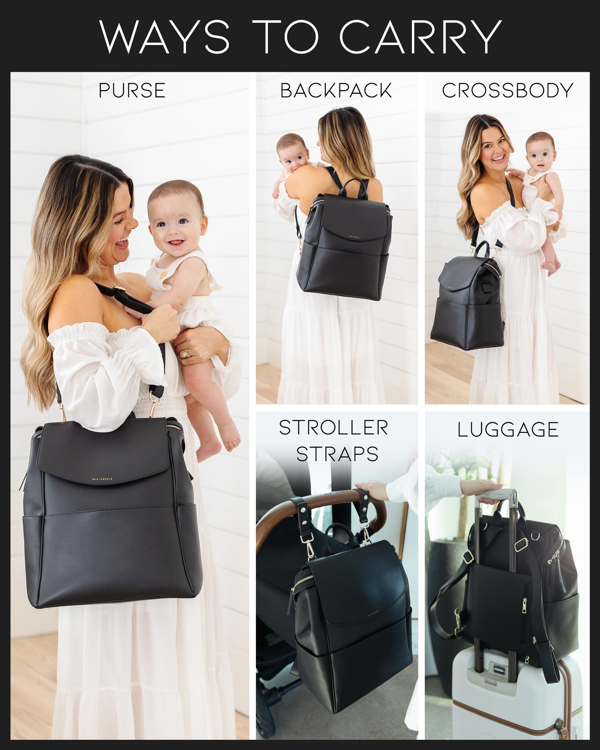 - Q: Can I wear this bag as a backpack? A: Yes, the MIA + SOPHIA Leather Diaper Bag is designed to be worn in multiple ways, including as a backpack, crossbody, or purse.