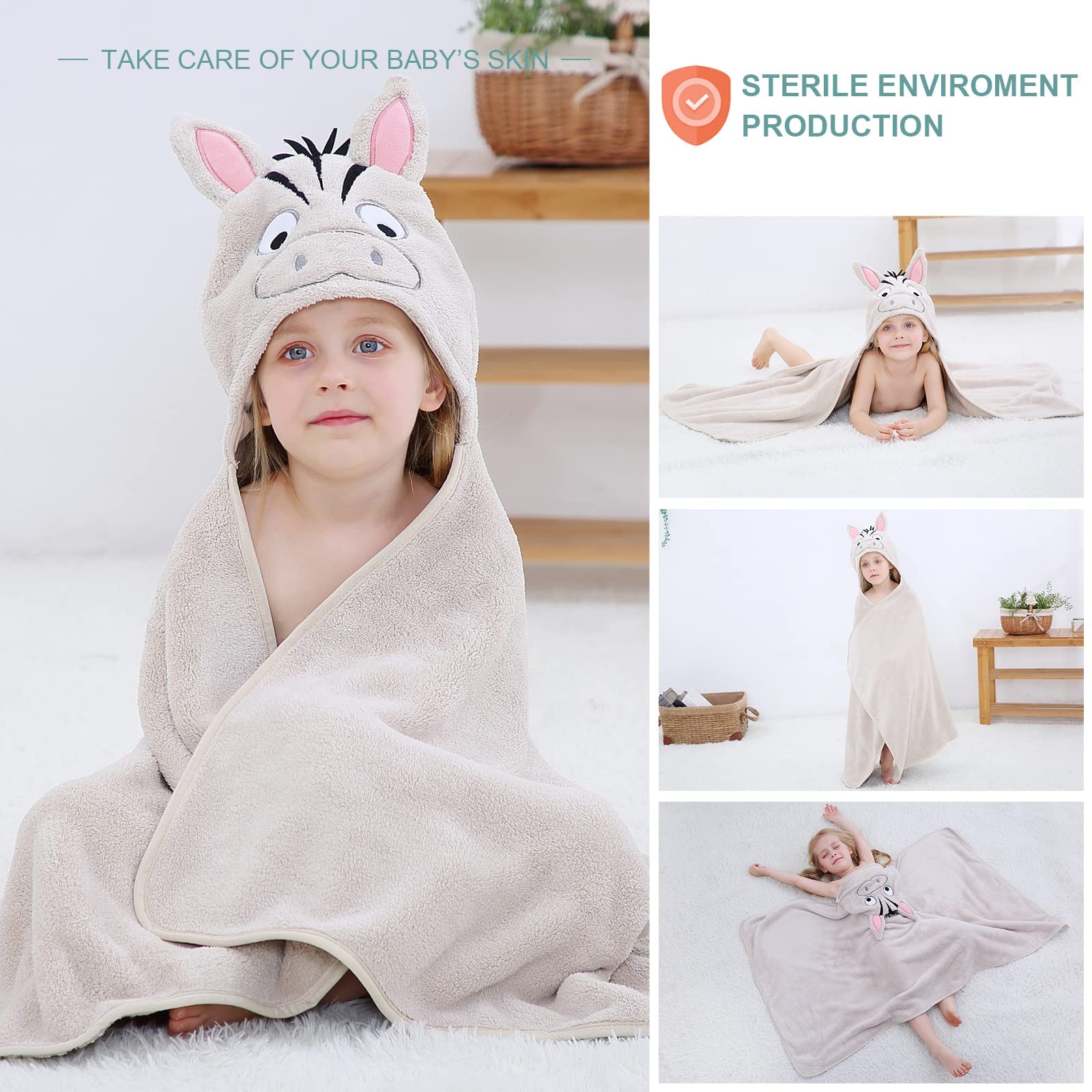 Michley Cartoon Hooded Baby Towel Unisex, Premium Soft Swimming Bathrobe Large Washcloths 27.5 ' X 47 ' For 0-7T (Zebra)