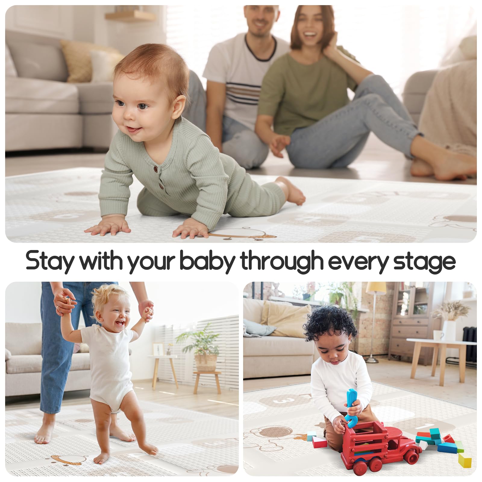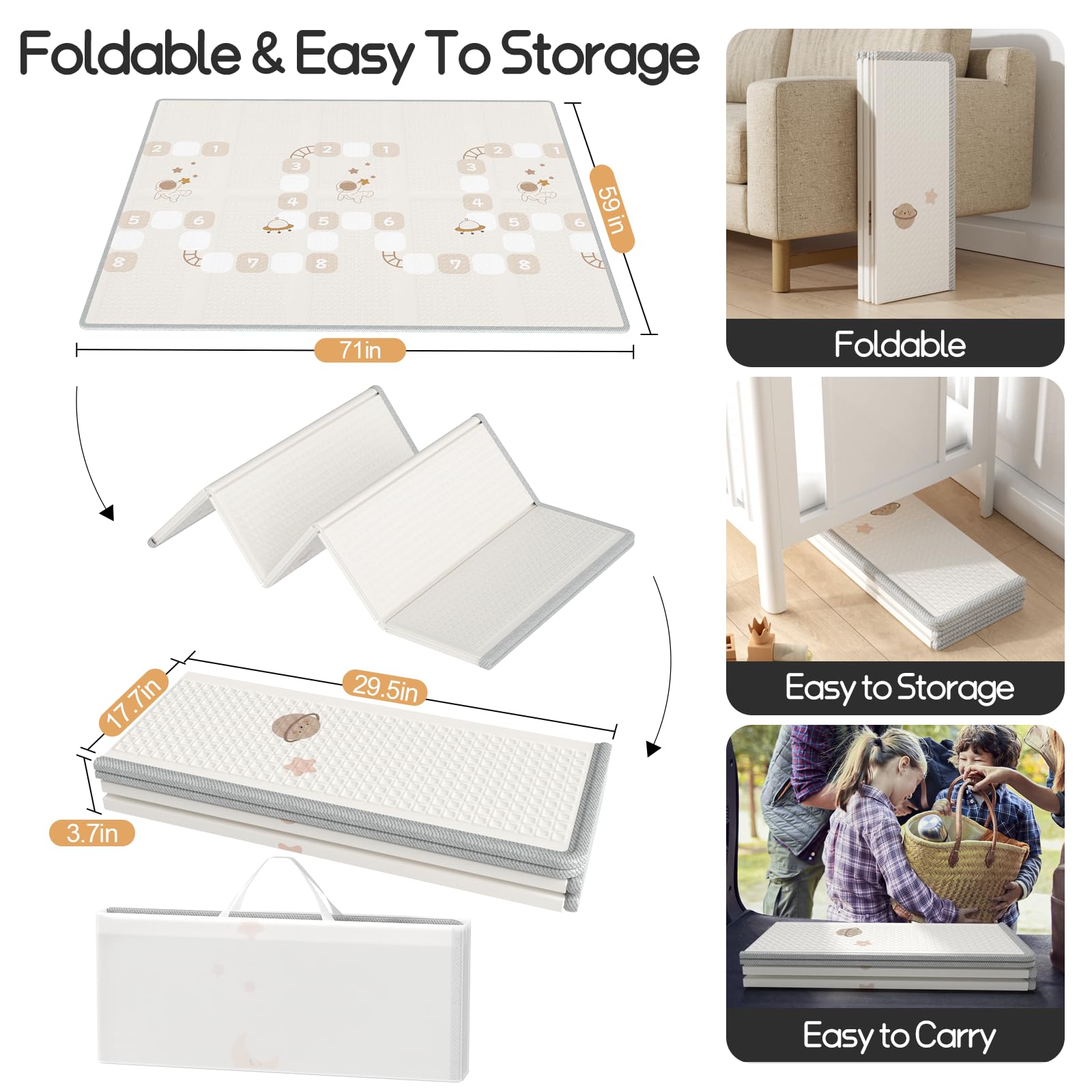 ?Large&Soft Playmat?59x71inch safety and comfort playmat for your baby,the perfect place for your little one to explore.1cm thickness Provide enough cushion for your baby who will or is learning to crawl.The mat for babies can be used in different scenarios. Multiple uses of mats, not only can use as a Yoga mat but also can use as a normal cushion like a picnic blanket. Family can enjoy a happy union time. | ?Waterproof & Easy To Clean?Say goodbye to messes and spills with ease thanks to the waterproof material of our playmat. It's simple to clean and maintain, For liquids like milk or water, just wipe with a paper towel, and for fixings like cookie crumbs, just pick up the floor mat and shake it off.Making life easier for busy parents. | ?Foldable& Carry Bag?Mloong folding mat offers convenience for all the family, easy to fold, easy to store, and can be successfully folded in three seconds when not in use. And a storage bag is provided, the bag helps protect the mat from dust and is easy to transport , whether you are going to a friend's house or on a family vacation. | ?Reversible Playmat?The baby playmat has double sides patterns with colorful and cute cartoon animals that can stimulate the baby's real vision growth and intellectual growth. | ?Baby's Safety Is The Priority?MLOONG Baby play mat is made of non-toxic, tasteless high, density XPE foam. The cute patterns on the baby playmat are printed with vegetable oil ink, feature BPA-free, non-toxic, no-fading, no chemical odor, and are comfortable and safe for infant tummy time and a baby crawling.