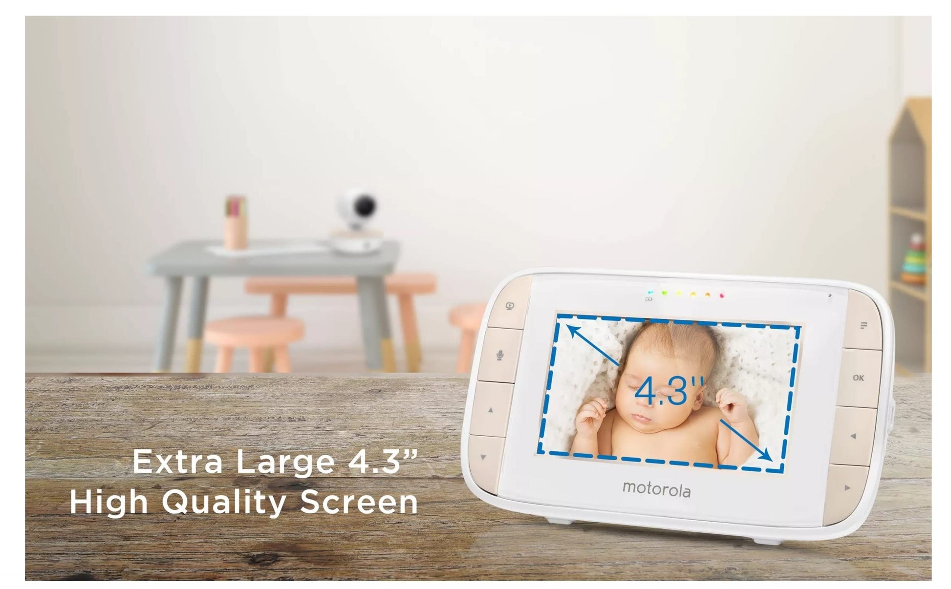 - Q: What is the screen size of the Motorola MBP44 Baby Monitor? A: The Motorola MBP44 Baby Monitor features a 4.3-inch color screen for clear viewing of your baby.