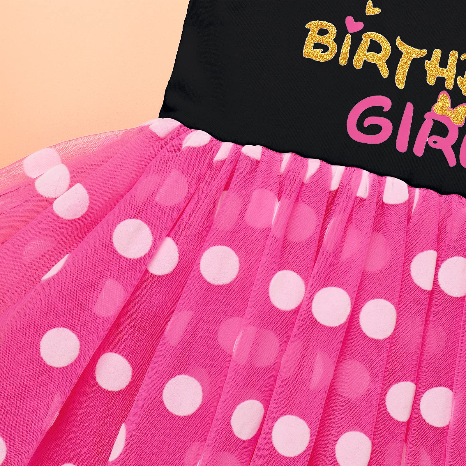 - Q: What is the design of the dress? A: The dress features a polka dot pattern with a self-tie strap bowknot at the waist and includes prints like 'Birthday Girl' and love hearts.