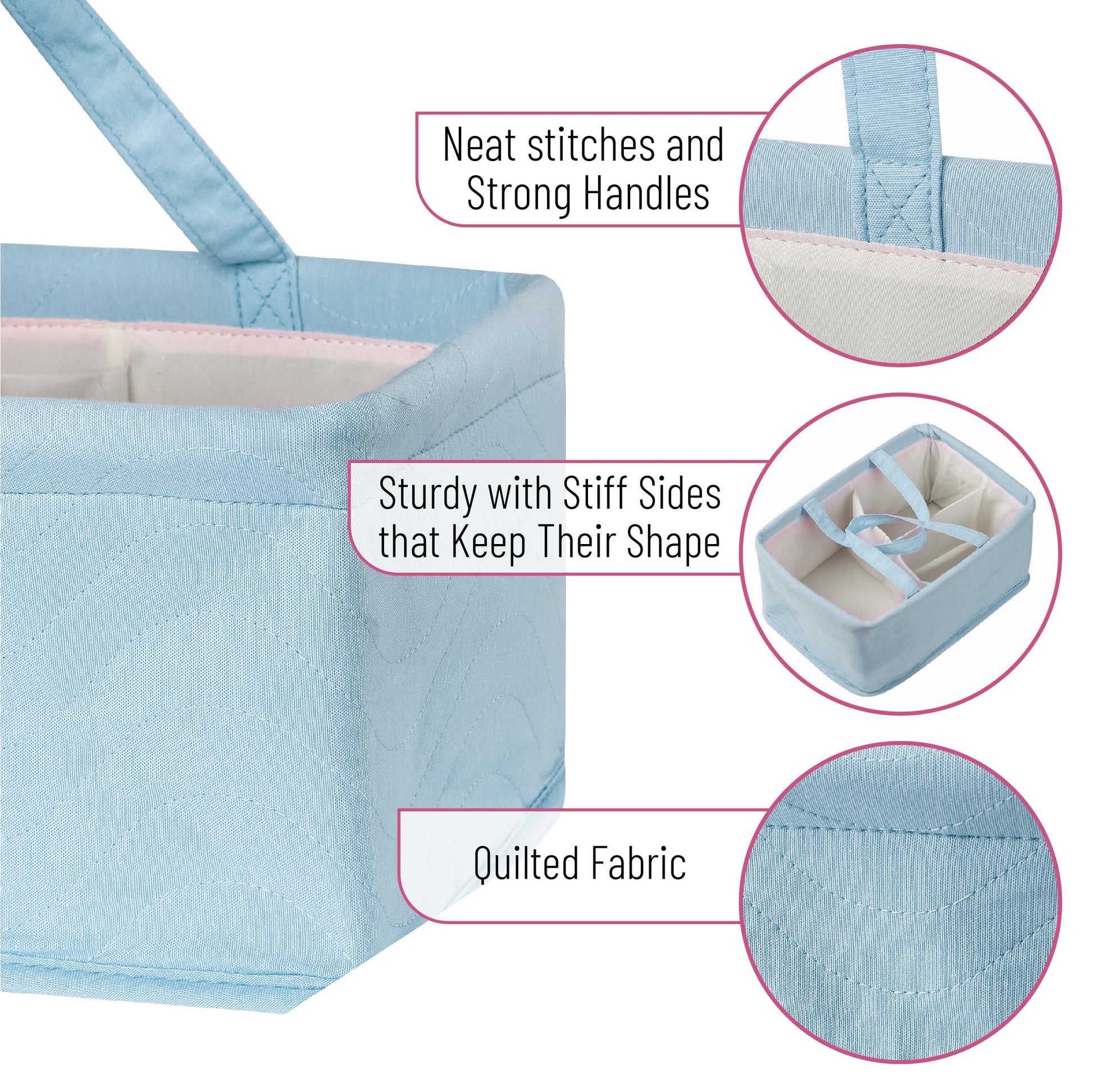 - Q: Does the diaper caddy come in different colors? A: Currently, the Mr. Pen Baby Diaper Caddy is available in a blue quilted fabric; however, please check the retailer for any additional color options.