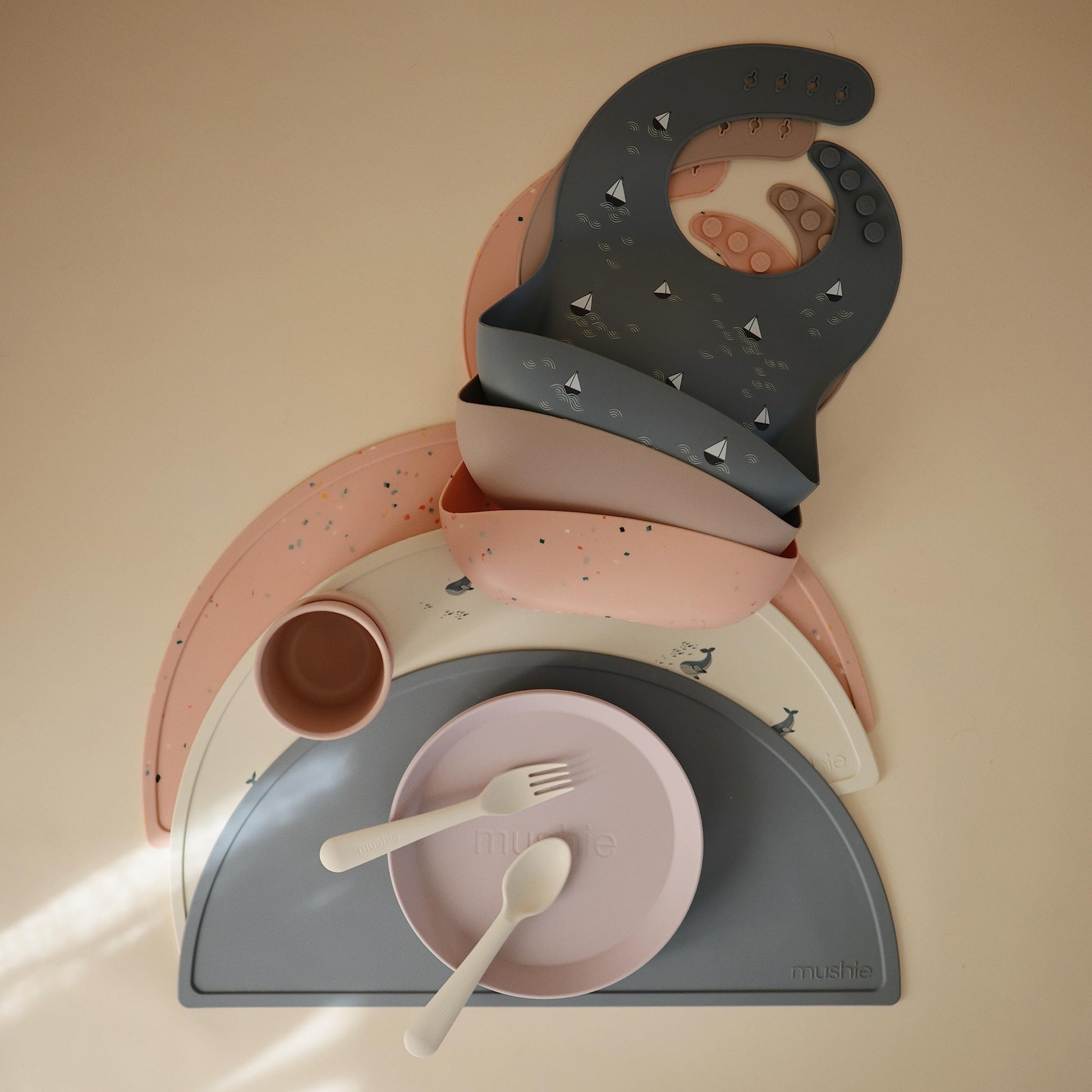 • Q: Is the placemat compatible with other mushie products? A: Yes, the colors of the mushie Silicone Placemat pair well with mushie silicone bibs, pacifiers, and pacifier clips.