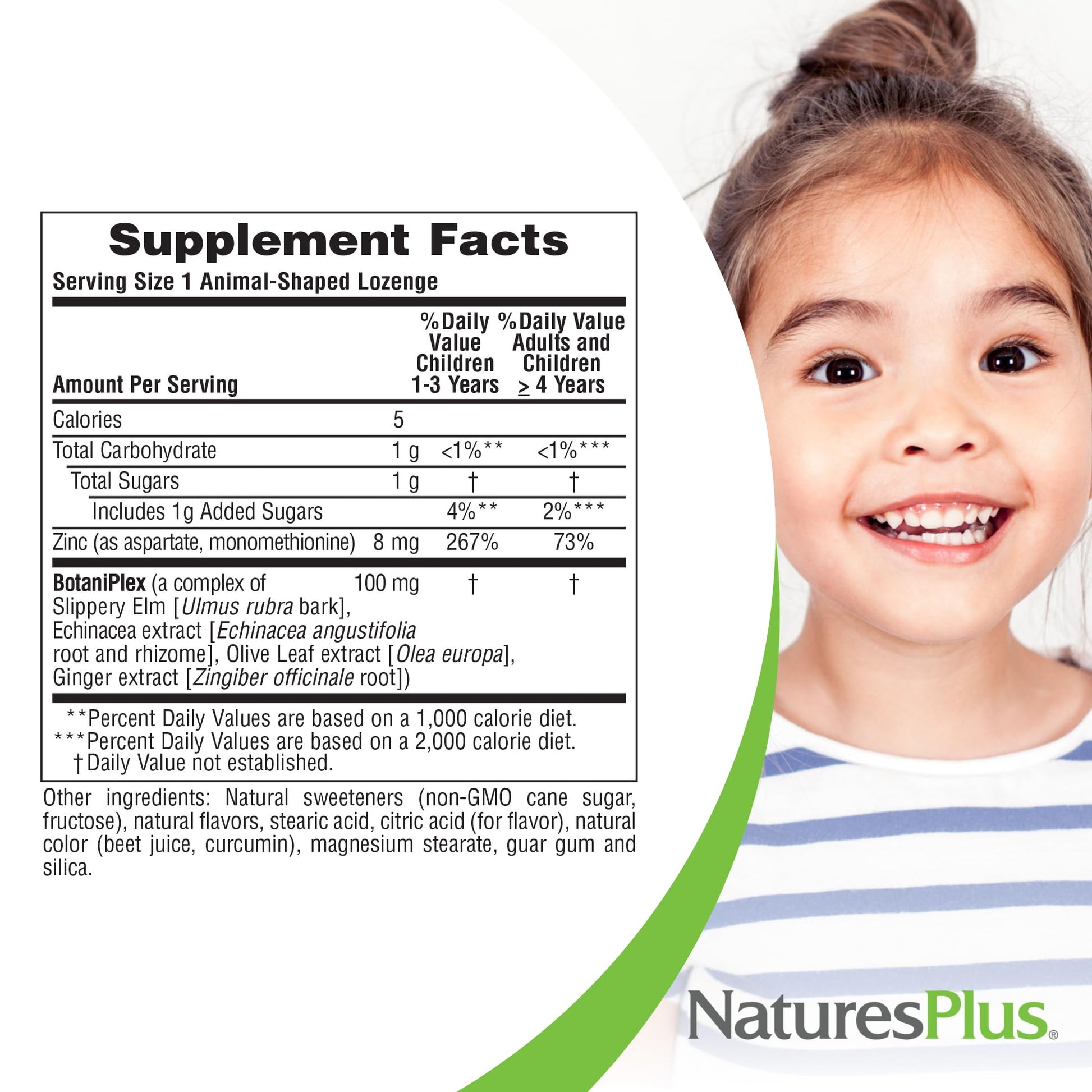 - Q: What are the main benefits of NaturesPlus Animal Parade KidZinc? A: NaturesPlus Animal Parade KidZinc provides essential zinc that supports children's growth, brain development, and immune function, along with soothing herbal extracts.