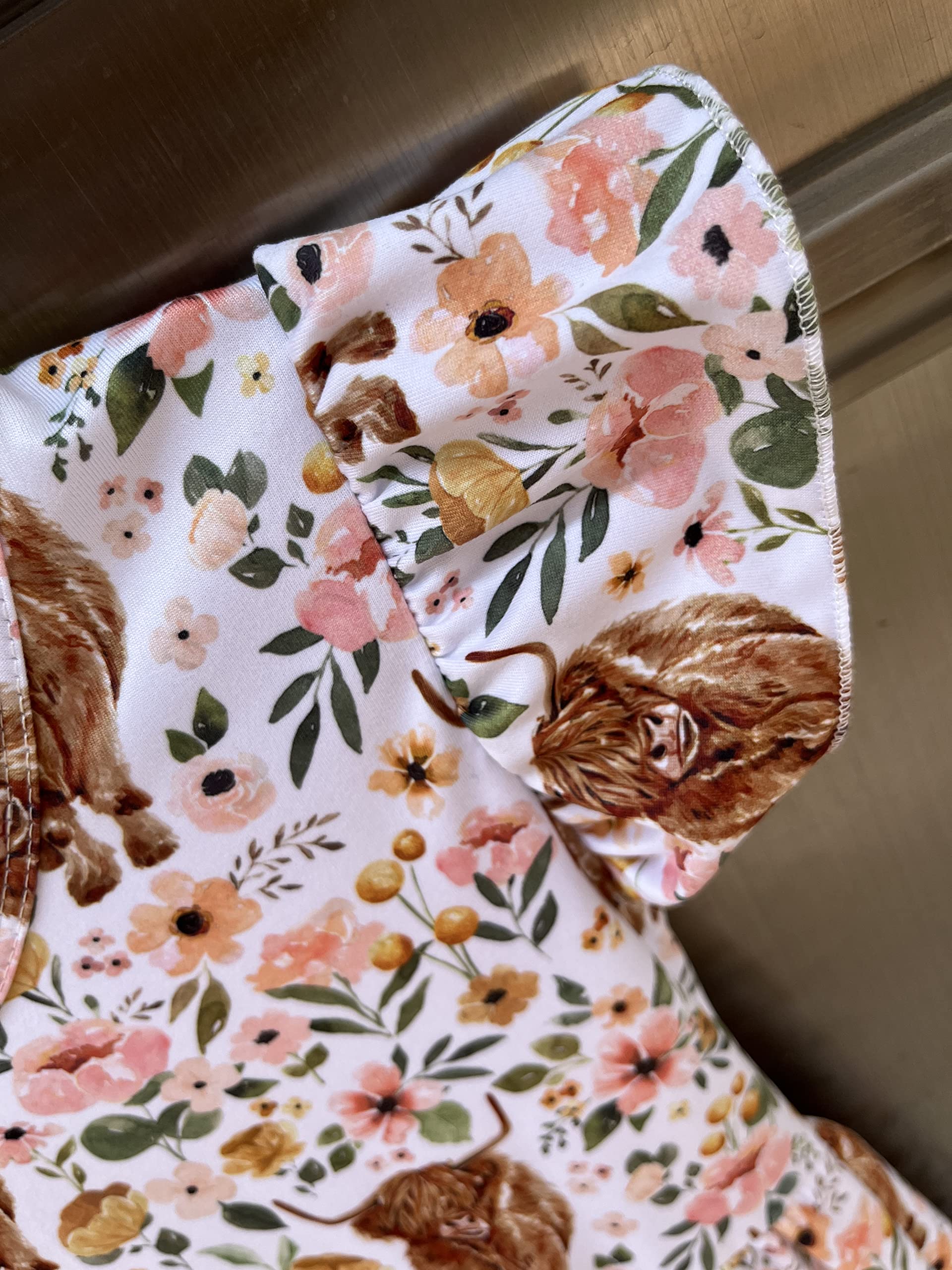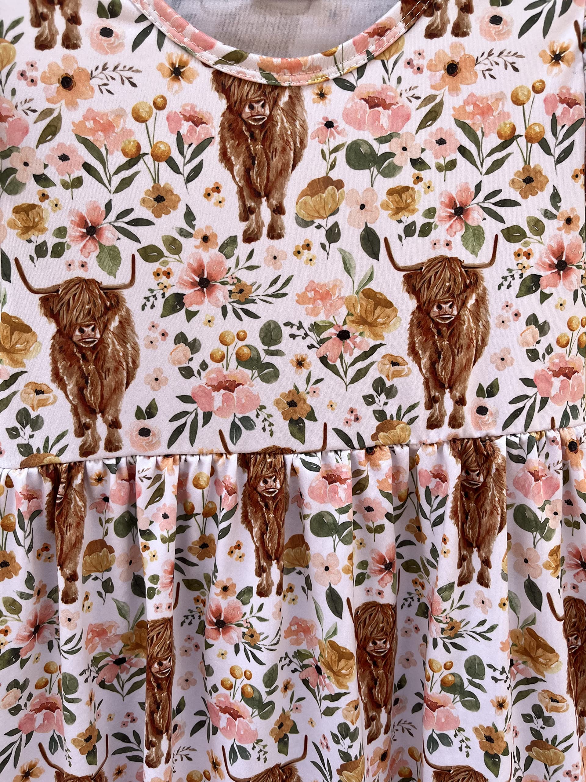 - Q: What sizes are available for the Highland Cow Flutter Sleeve Dress? A: The dress is available in sizes S(2T), M(3T), L(4T), XL(5/6T), 2XL(6/7T), 3XL(7/8T), and 4XL(8/9T).