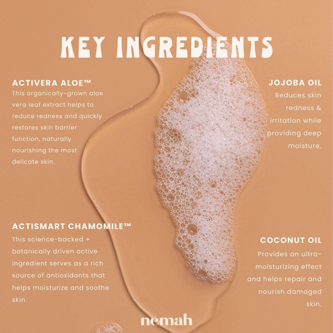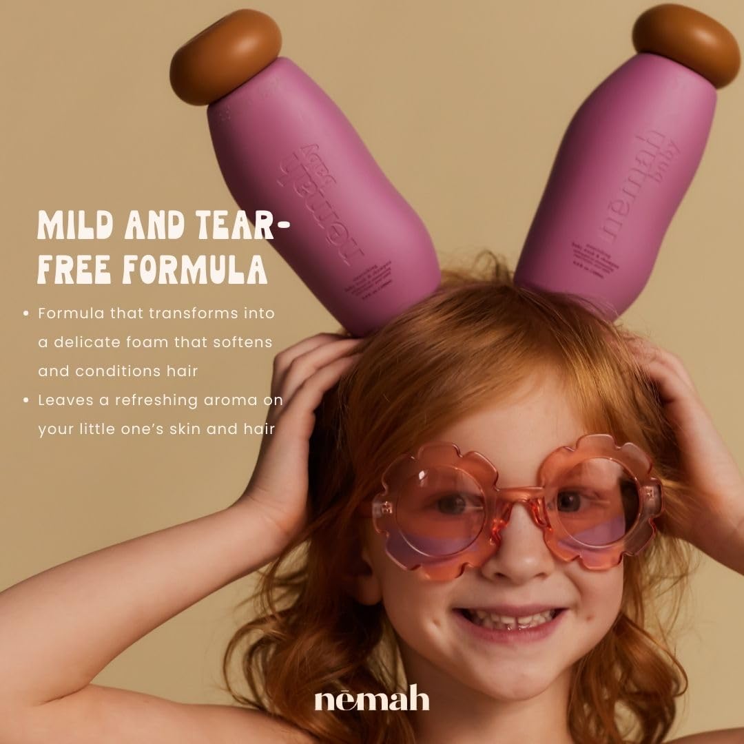 - Q: How do I use the Nemah Baby Soap and Shampoo? A: Pour a small amount into your palm or wash cloth, gently massage it onto your child's hair, scalp, and body, then rinse with warm water.