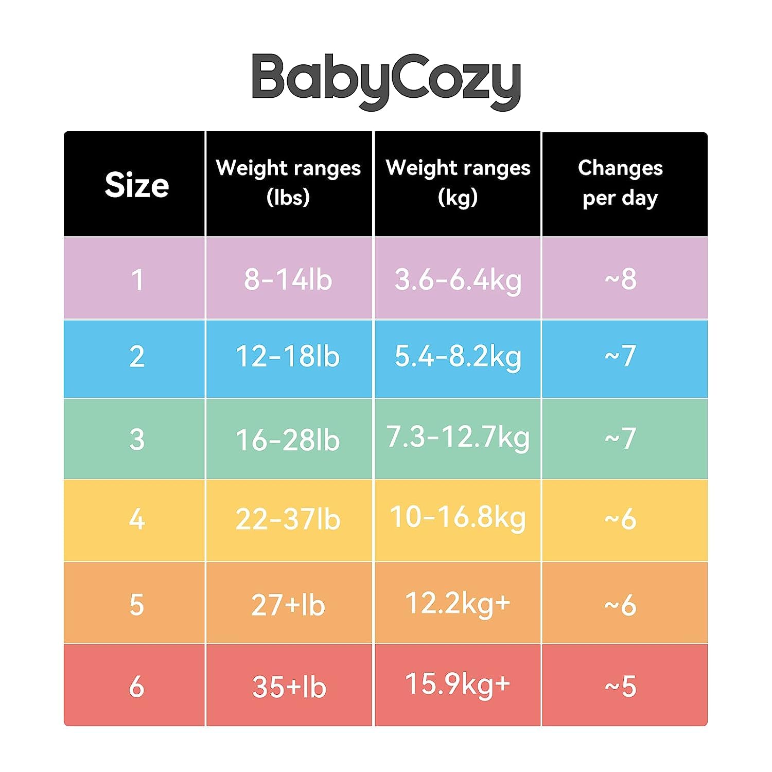 - Q: What size are the Babycozy diapers? A: The Babycozy diapers are Size 2, suitable for newborns weighing between 12 to 18 pounds.
