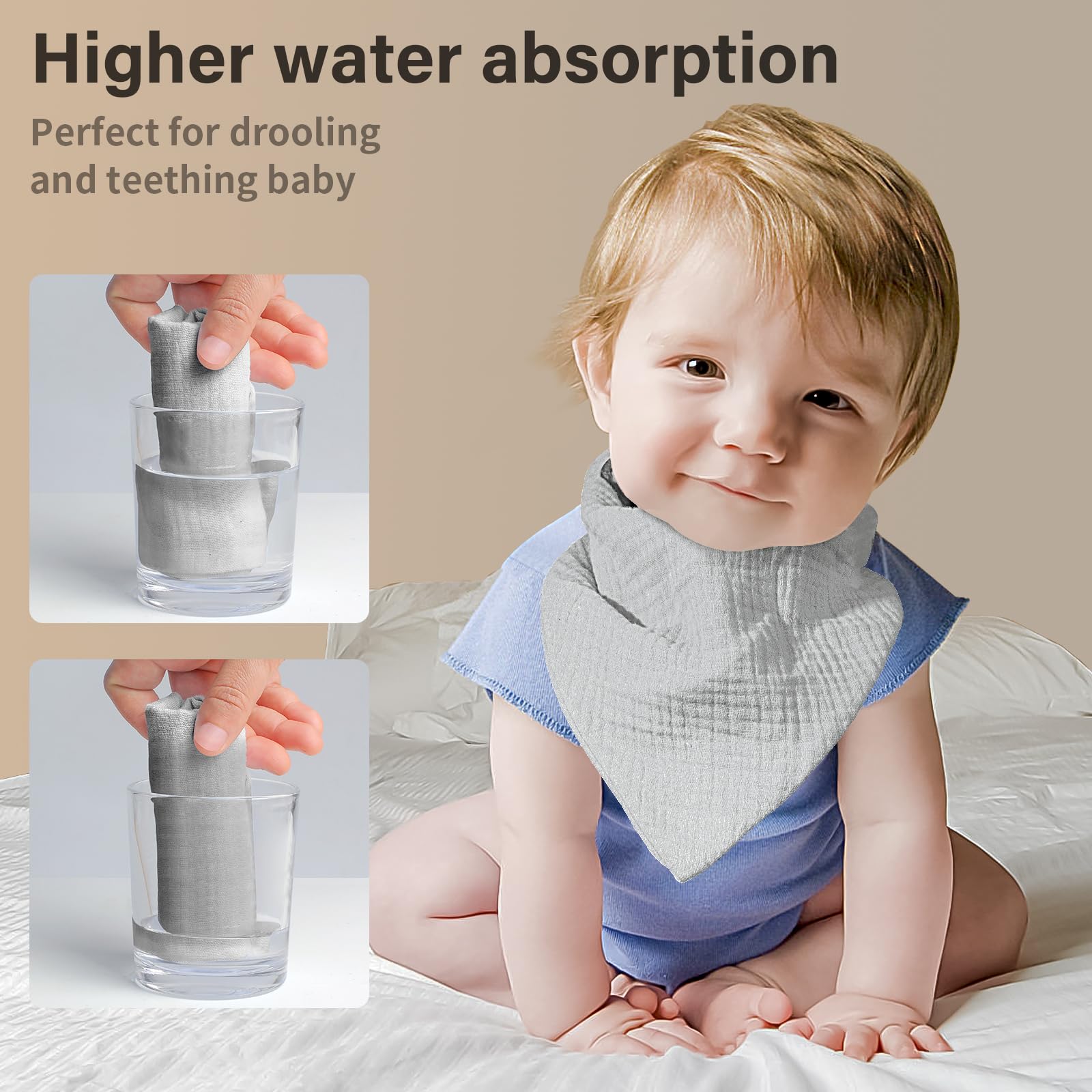 - Q: Do the bibs have any special design features? A: Yes, the bibs feature a stylish bandana design and are made with 5 layers of muslin for added comfort and absorption.