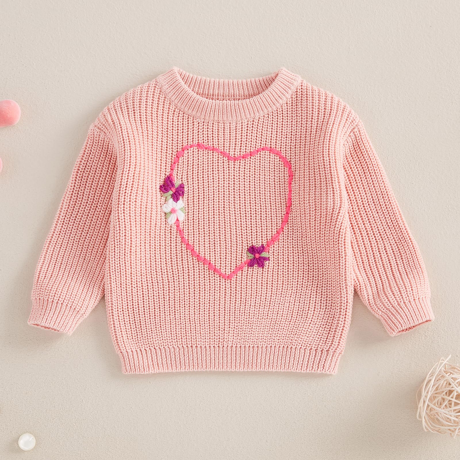 - Q: Does this sweater have any special features? A: Yes, the sweater features a long sleeve design, a crew neck, and a cute heart and flowers pattern, making it stylish for young girls.