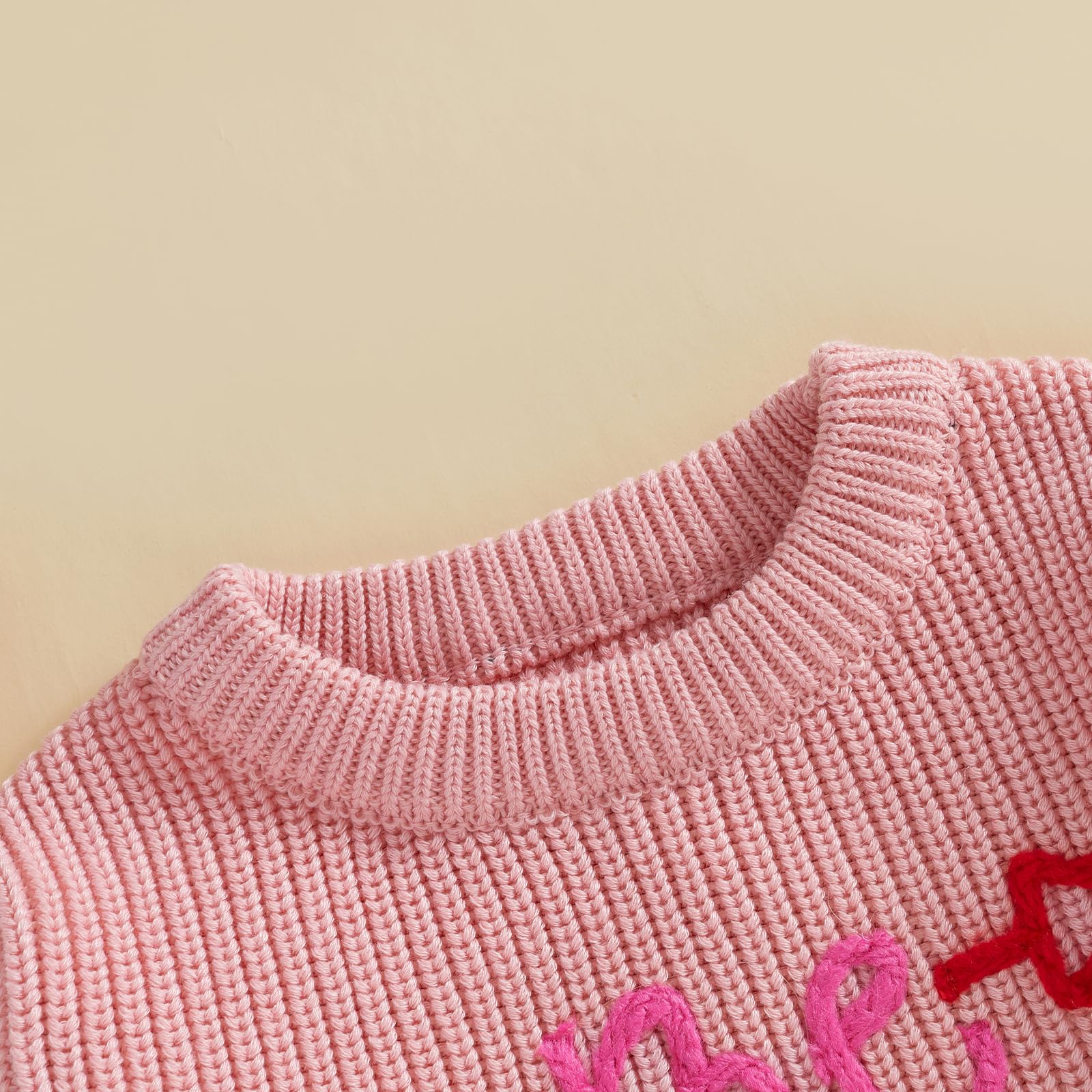 - Q: Are there any color variations for this toddler sweater? A: This specific listing is for the 'Pink Be Mine' color, suitable for Valentine's Day, but check for other available colors on the product page.