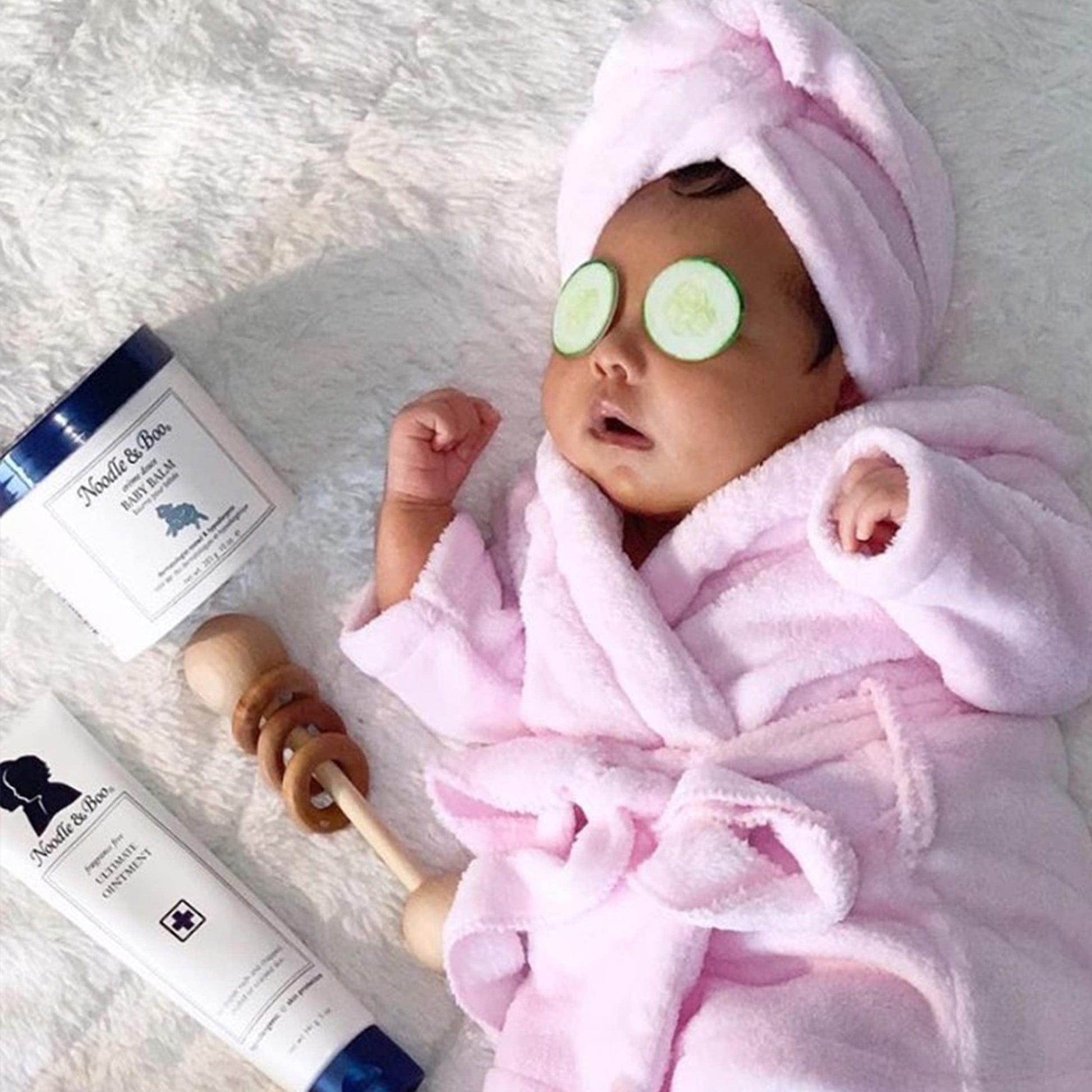 - Q: How should I apply the Noodle & Boo Baby Balm? A: Apply the balm liberally to the face and body as needed, or as directed by a physician.