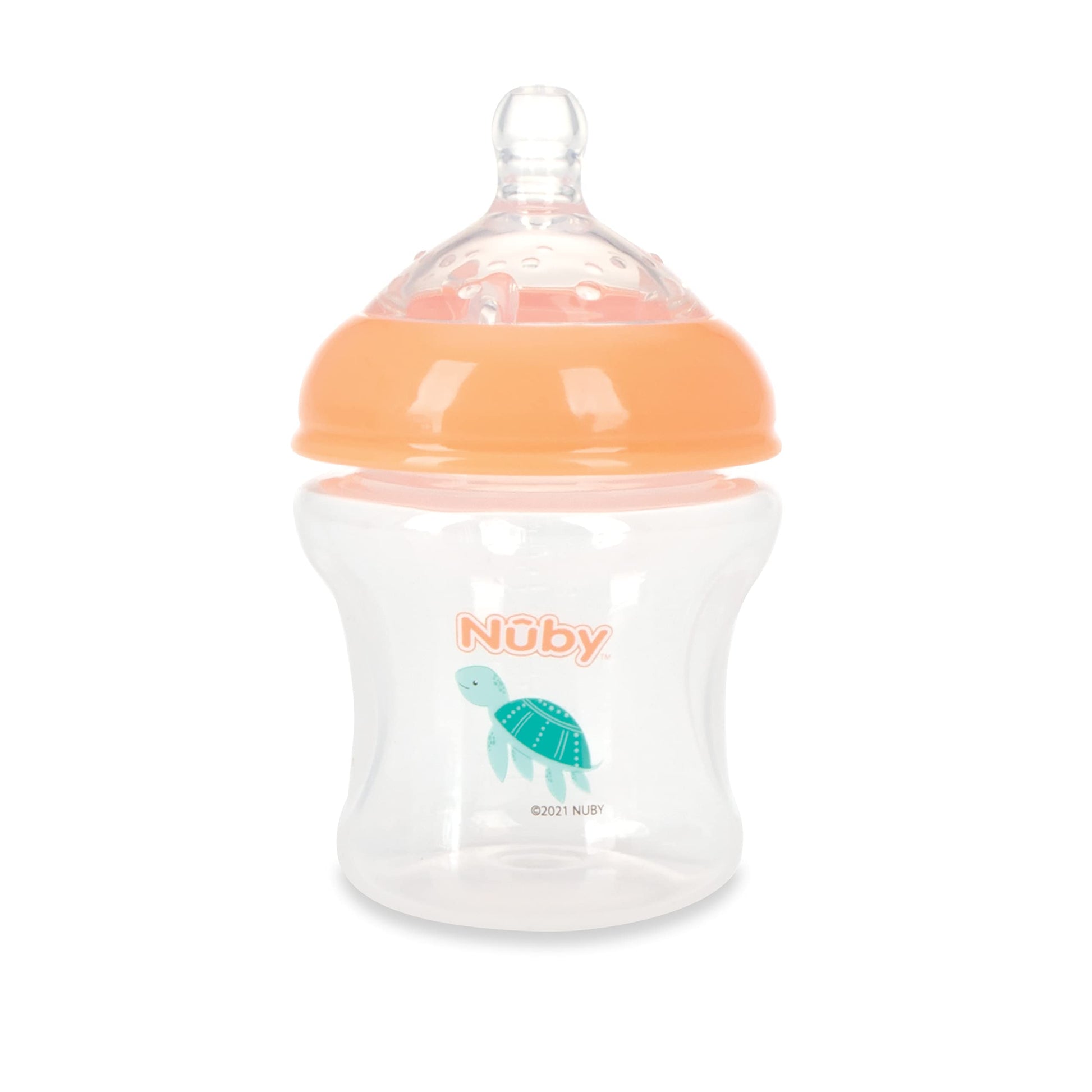 Nuby's Printed Infant Bottles have a slow flow silicone nipple that will allow your baby to drink at their own pace. The finger grips provide sability for your little while they drink.