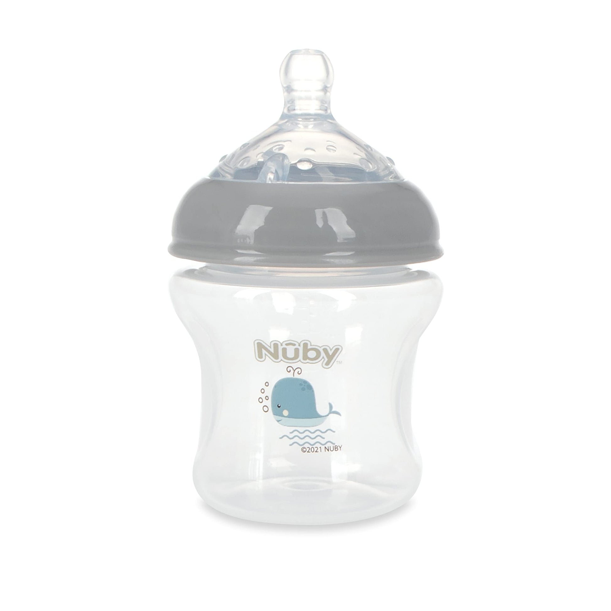 Nuby 3-Pack Infant Feeding Bottles With Slow Flow Breast Size Silicone Nipple: 0+ Months, 6Oz, 3 Pack Set: Delicate Whale, Jelly