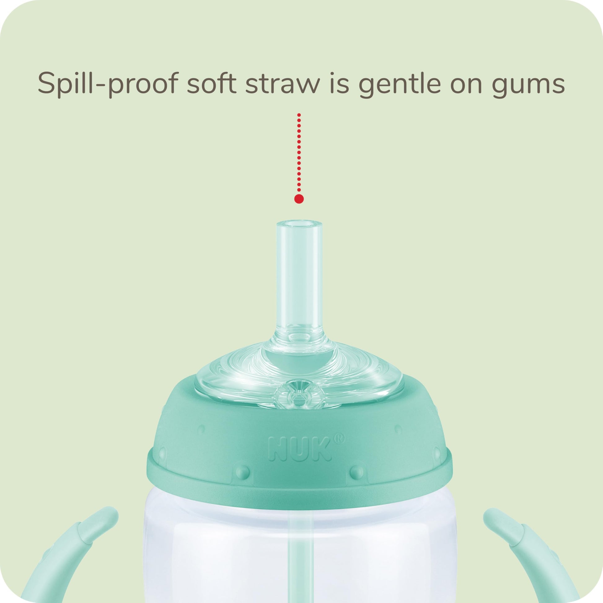 - Q: Are there any special features for transitioning from a bottle to a straw cup? A: Yes, the NUK Learner Straw Cup helps ease the transition from bottle or soft-spout sippy cups to using a straw.
