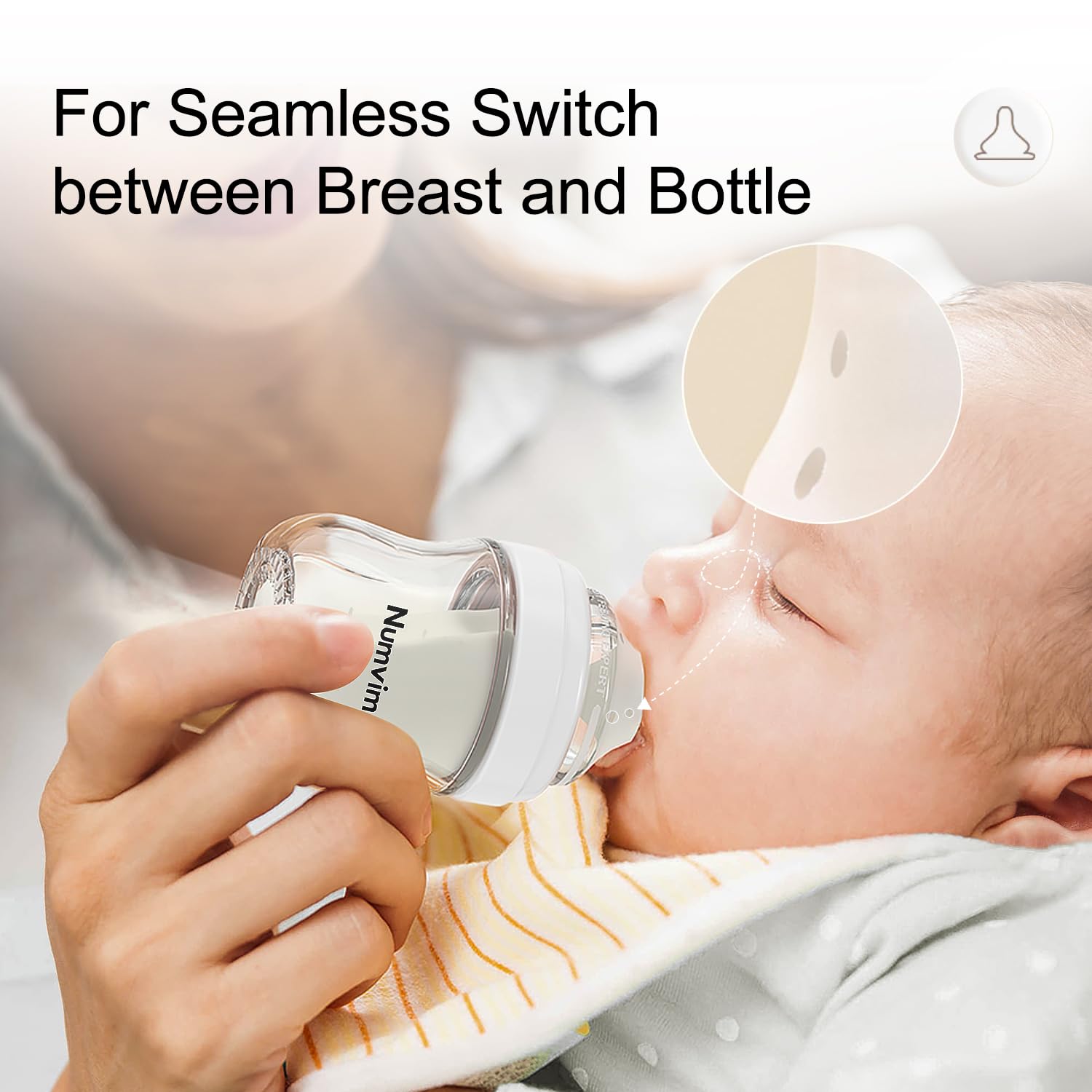 Numvim Glass Nurturing Baby Bottles Gentle & Extra Slow Flow, Newborn Breastfeeding Bottle With Anti Colic Nipple For 0 Months B