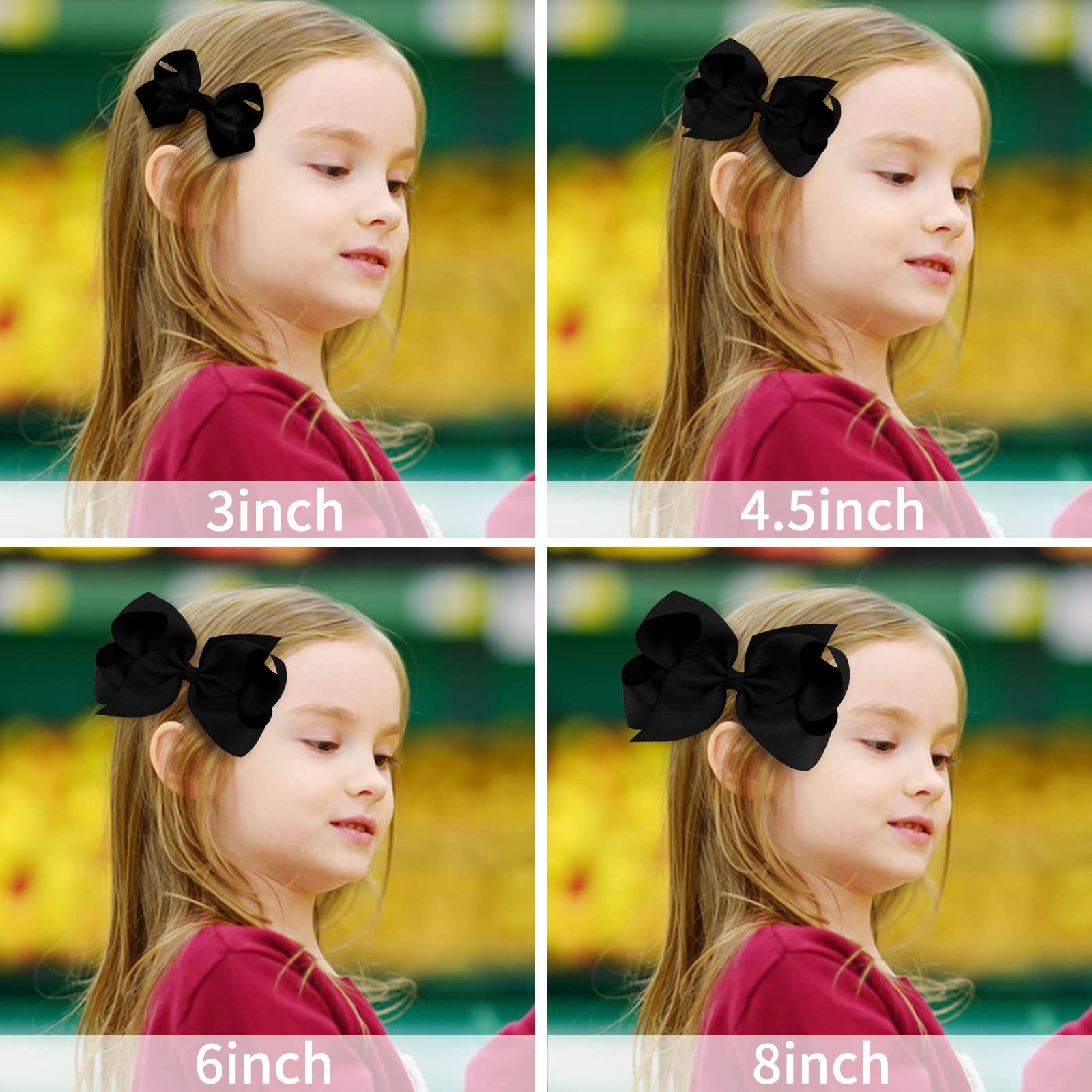 - Q: How many hair bows are included in the package? A: The package includes a total of 12 hair bows, consisting of various sizes: two bows each of 8 inches, 6 inches, 4.5 inches, and 3 inches.