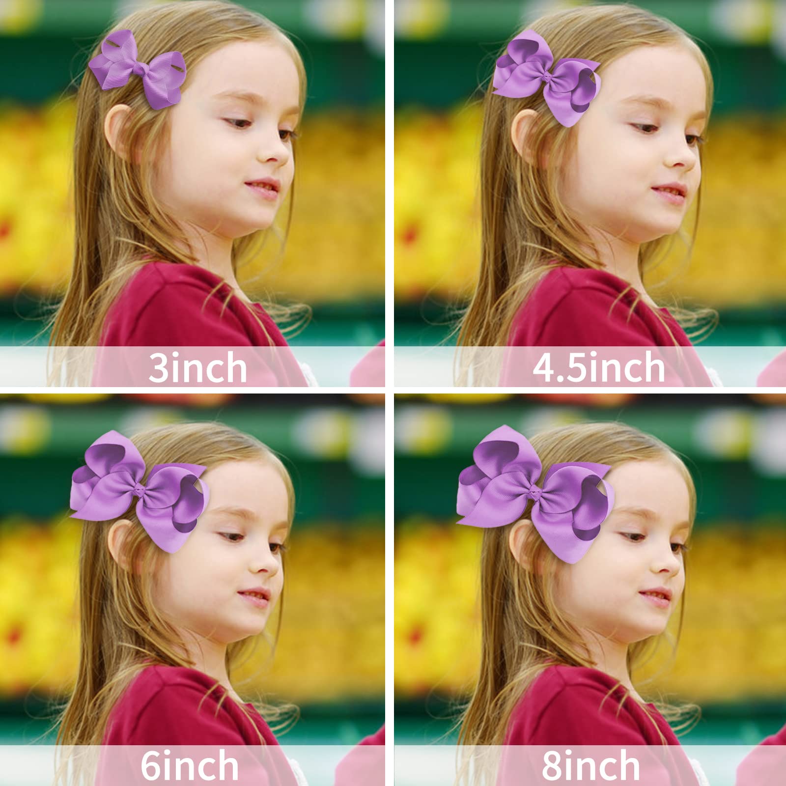 - Q: How many hair bows are included in the package? A: The package includes a total of 8 hair bows in various sizes: 2 bows at 8 inches, 2 bows at 6 inches, 2 bows at 4.5 inches, and 2 bows at 3 inches.