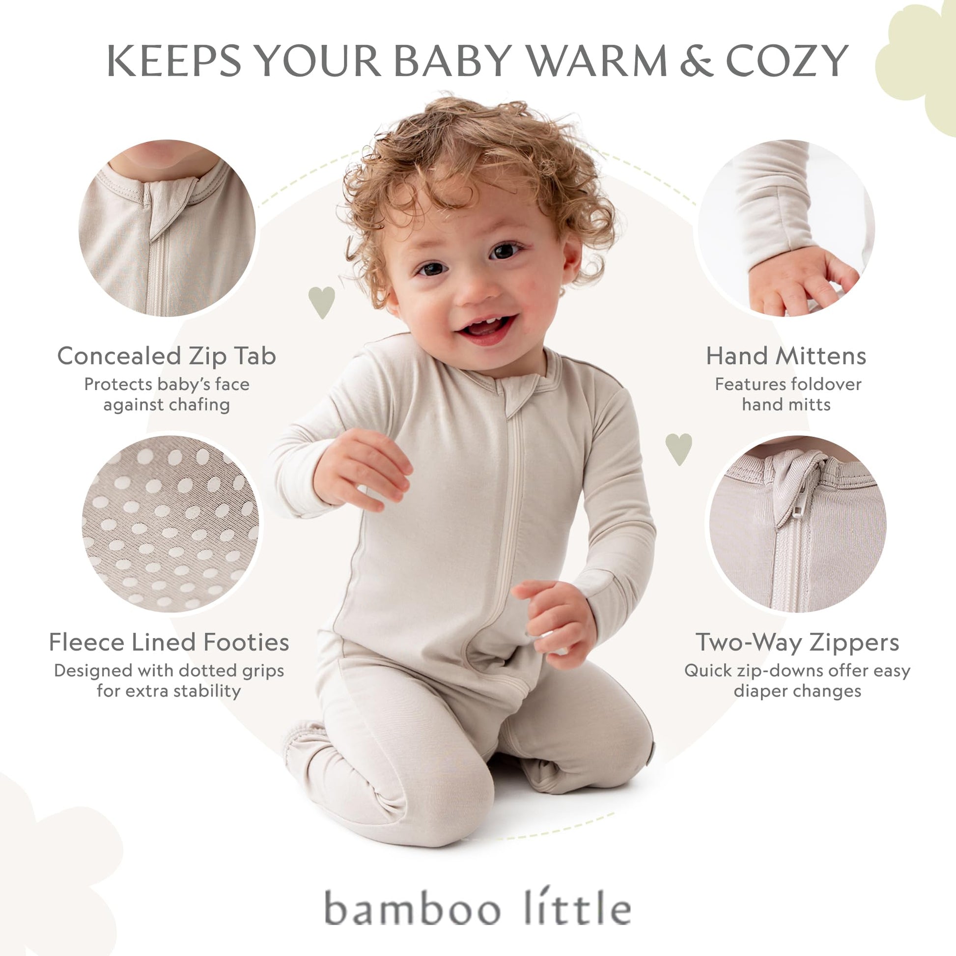 - Q: What are the unique features of the Oat Footie? A: The Oat Footie includes features such as a concealed zip tab at the neckline, no tag for extra comfort, and ultra-soft fleece lined feet for added warmth.