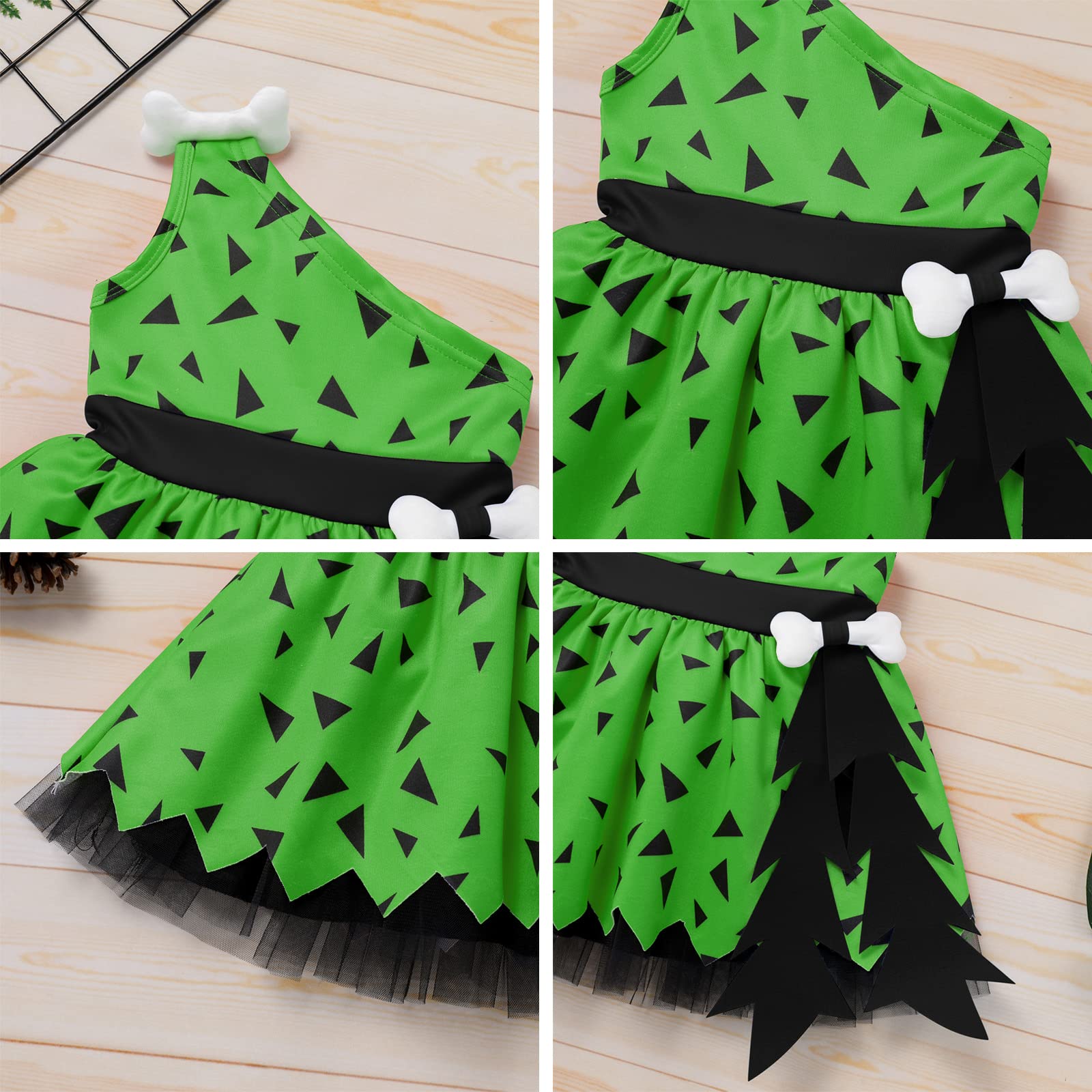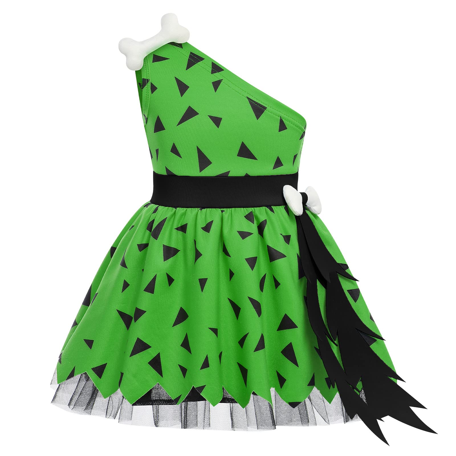 - Q: What does the costume package include? A: The package includes a dress, a headband, pants, and a club, providing a complete caveman look for your child.