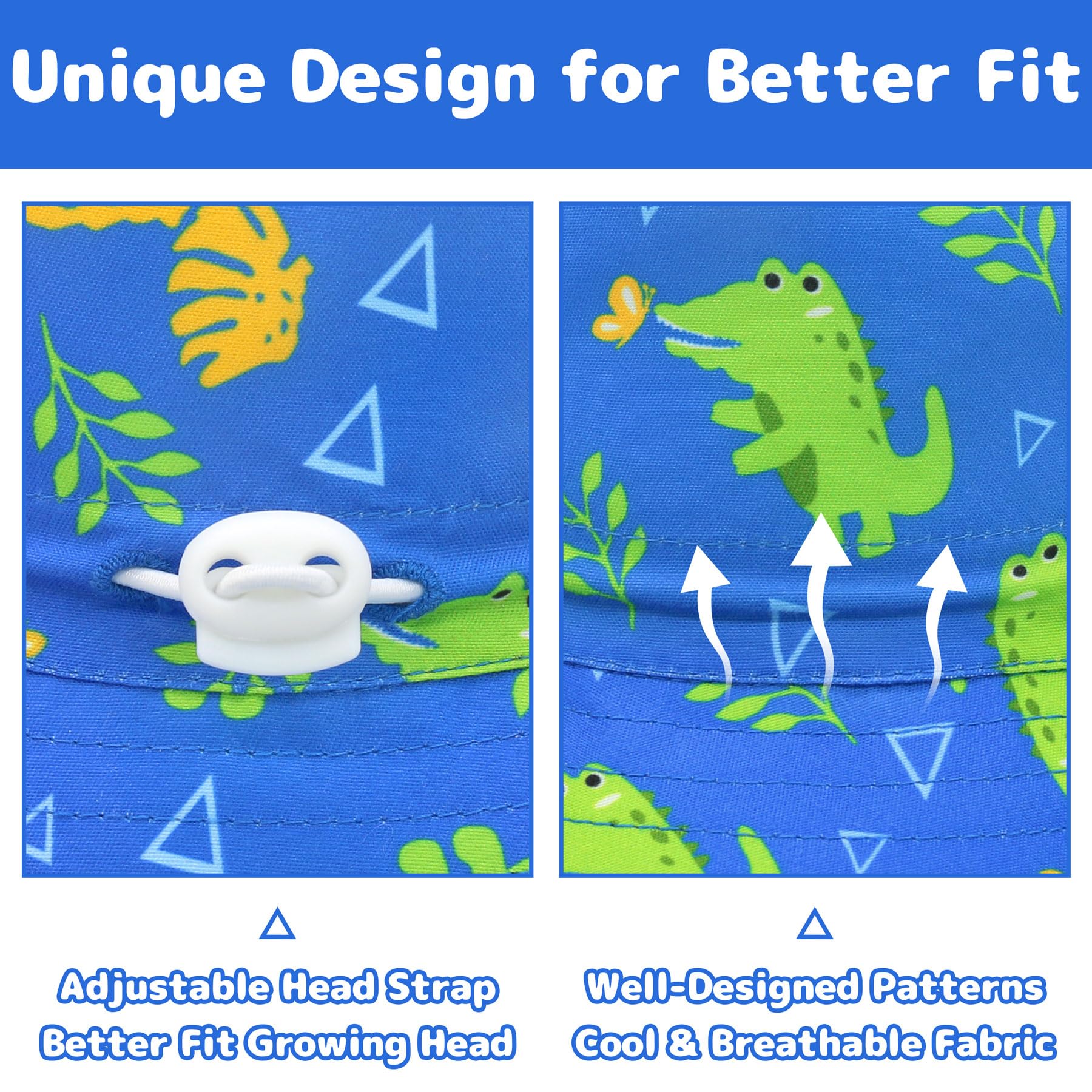 - Q: What kind of design does the sun hat have? A: The Olreco Baby Boy Sun Hat features unique and vivid animal patterns that are designed to catch the attention of babies and stimulate their curiosity.