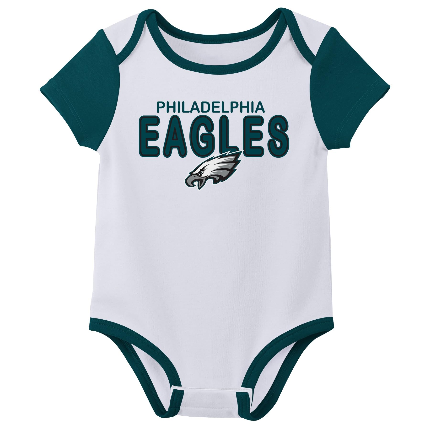 - Q: What teams are represented in the bodysuit variety pack? A: The bodysuit variety pack features designs representing the Philadelphia Eagles, among others, showcasing team logos and colors.