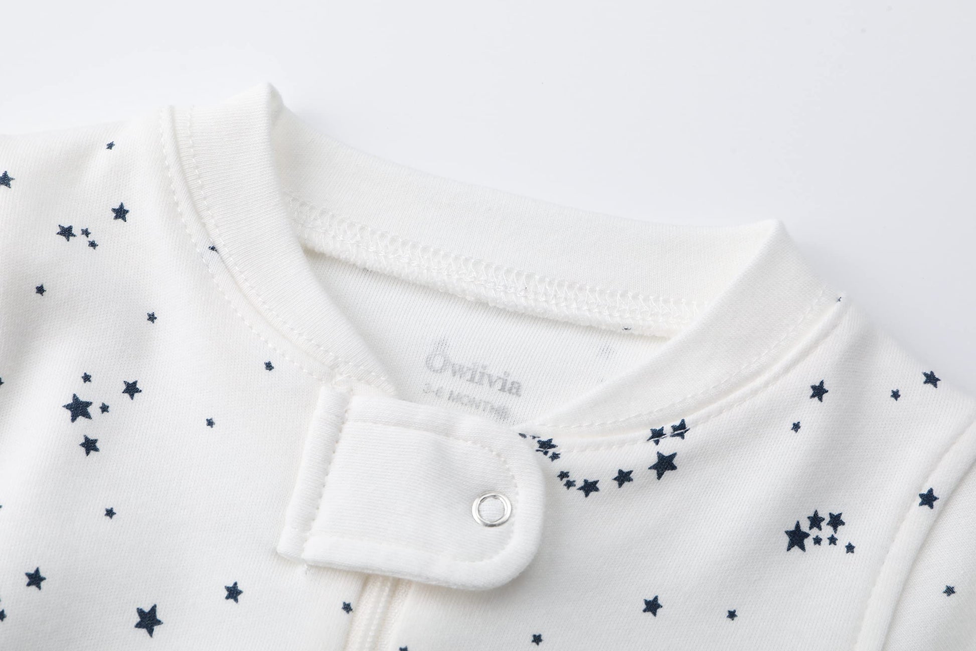 - Q: What are the key features of the Owlivia Sleep N Play? A: Key features include 100% organic cotton material, a neck to toe zip closure for easy changes, durable fabric, ready-to-grow cuffs for a better fit, and a diaper gusset for extra room.