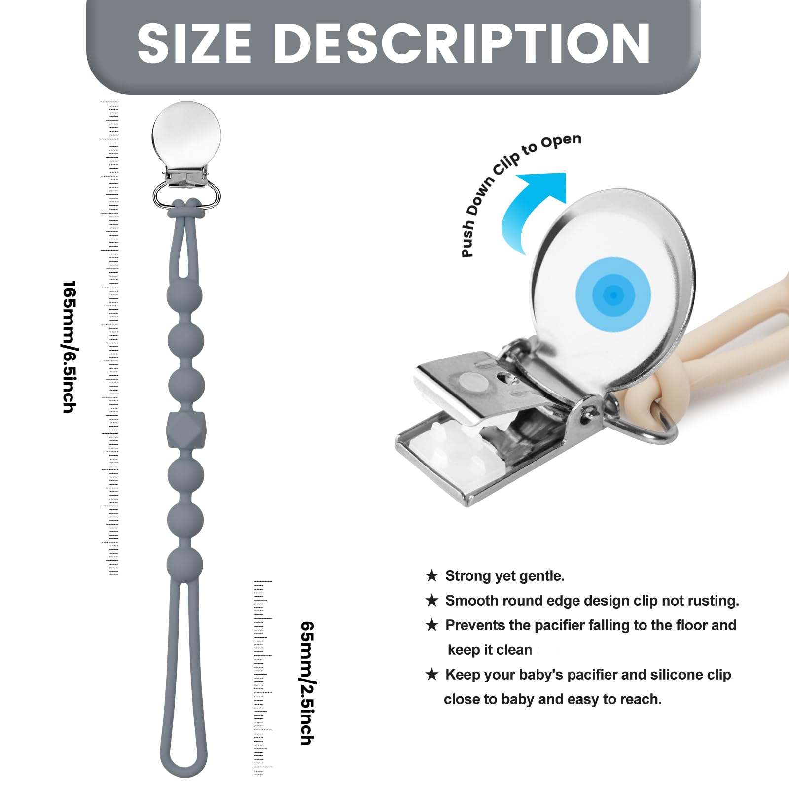- Q: Can these clips fit on all types of pacifiers? A: The clips are compatible with most pacifiers, bibs, Nuks, and MAMs, making them versatile for various needs.