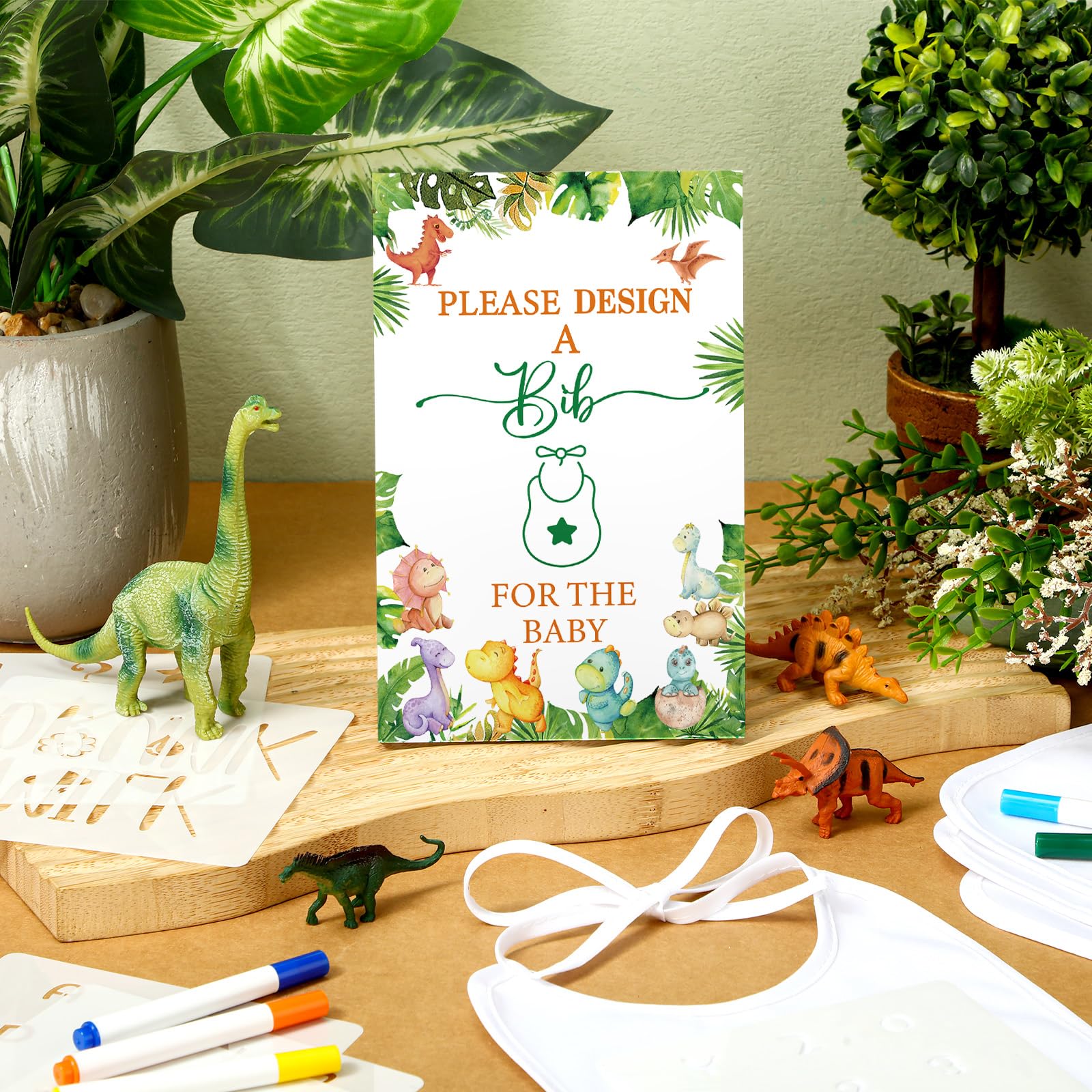 - Q: What is included in the Panitay DIY Baby Bibs Decorating Kit? A: The kit includes 50 white baby bibs, 25 different painting stencils, 24 fabric markers in 12 ink colors, and a wooden baby shower game sign.