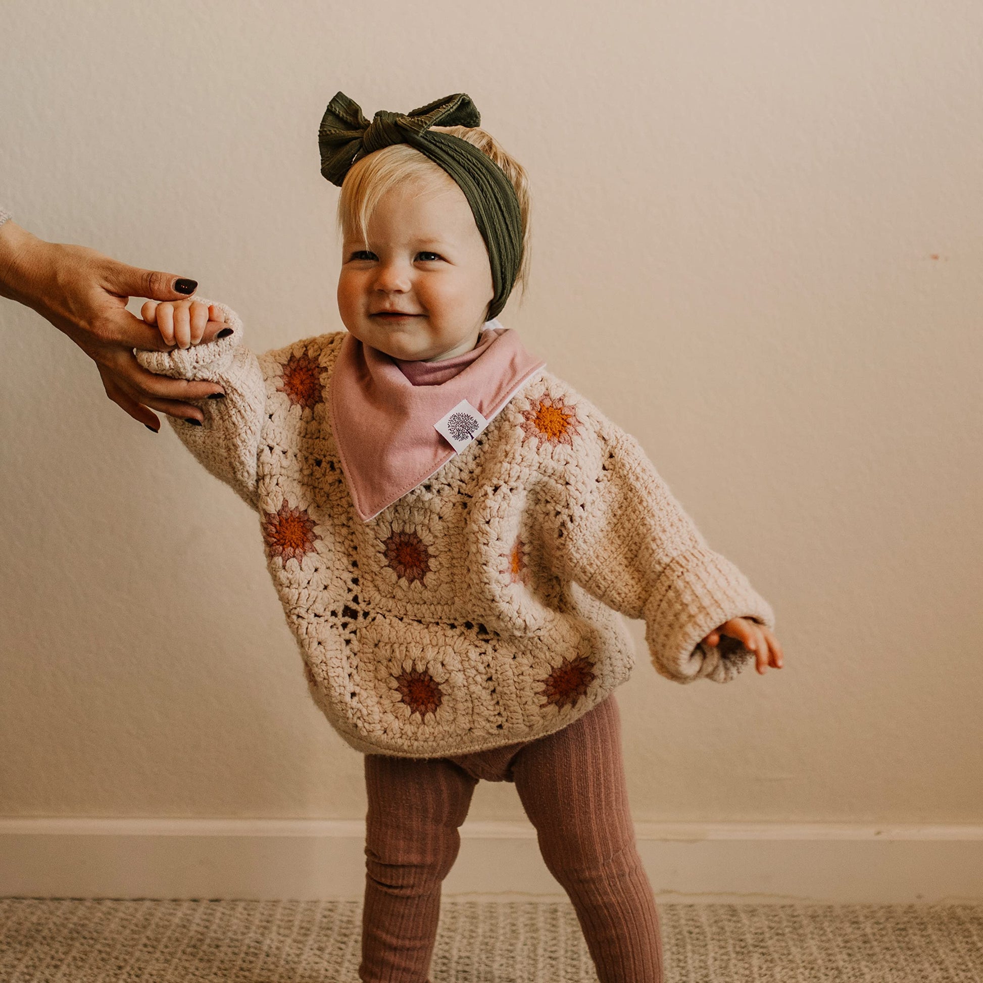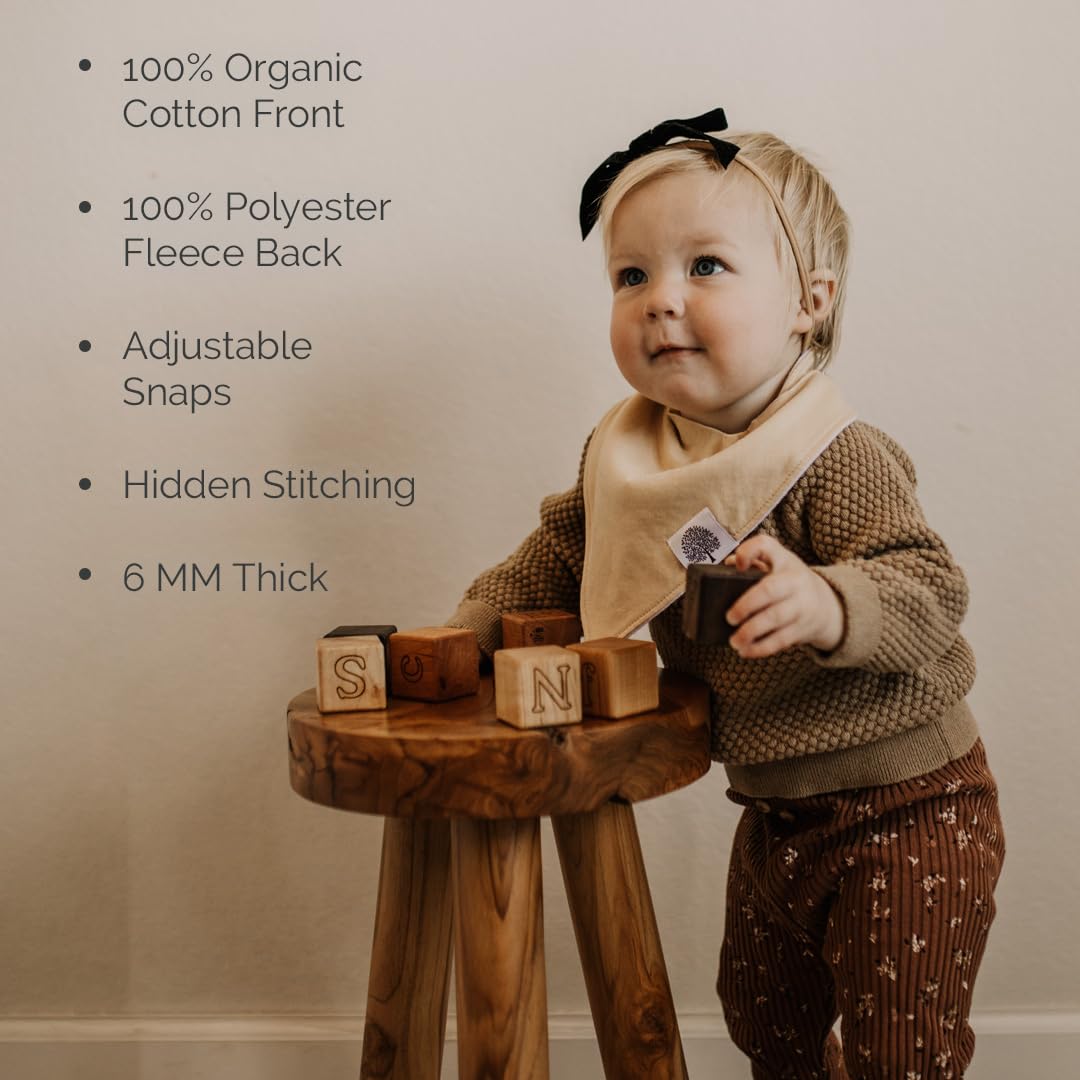 - Q: How do I know which side to wear the bib on? A: Both sides of the bibs are stylish and can be worn interchangeably, allowing you to match them with your baby's outfit.