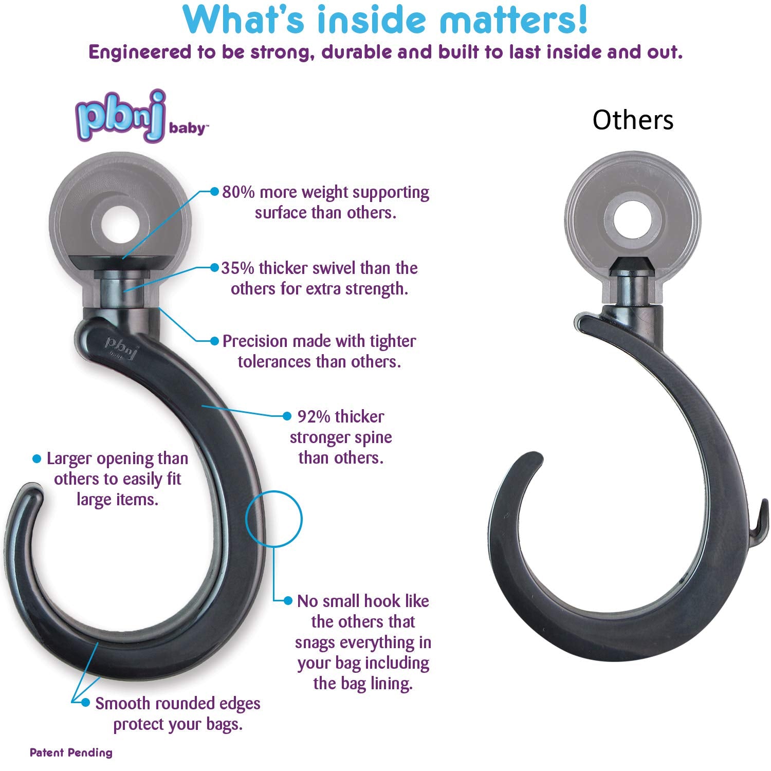 - Q: Can these hooks be used for purposes other than for strollers? A: Yes, the PBnJ stroller hooks are multipurpose and can be used for carrying grocery bags, connecting bags to luggage, and even for organizing items in your garage or workshop.