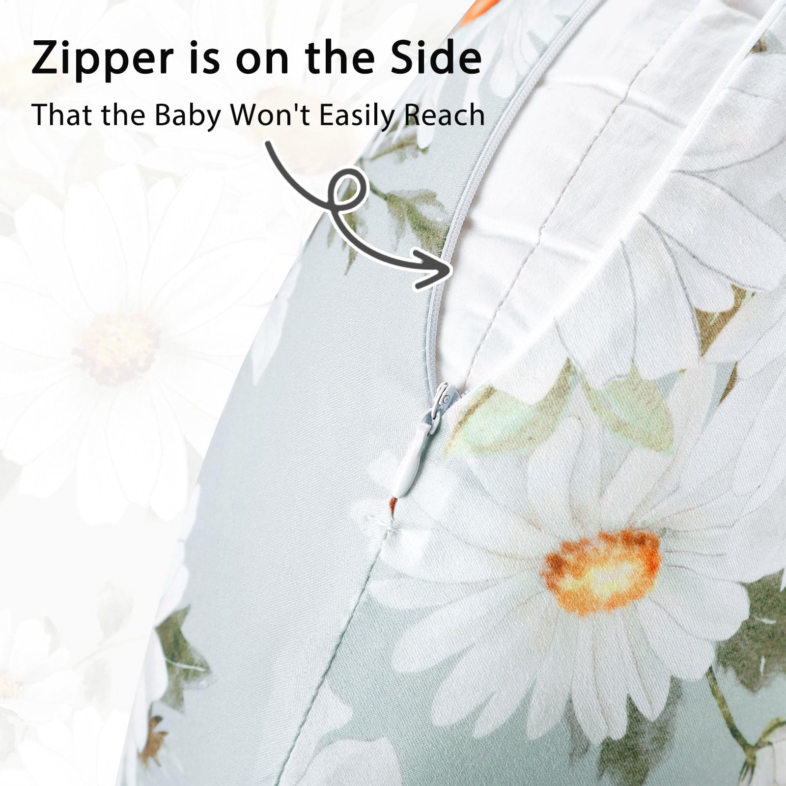 - Q: Does the pillow cover have a zipper for easy replacement? A: Yes, the Pea Pod Nursing Pillow Cover features a large zipper located on the hidden side for easy on and off, keeping it discreet during use.