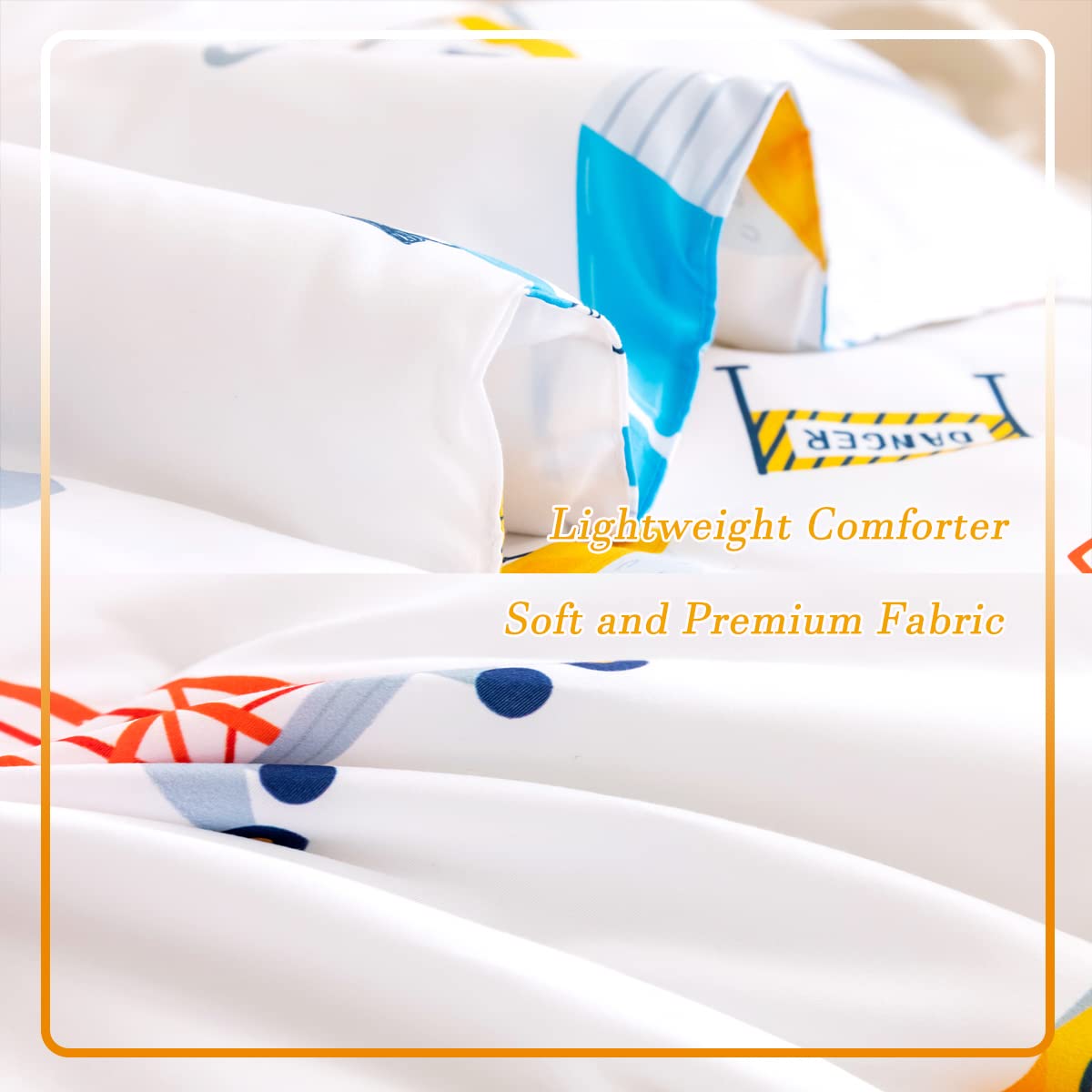 - Q: What design does the toddler bedding feature? A: The bedding set features colorful and detailed patterns of construction vehicles such as trucks, excavators, and cranes, making it appealing for both boys and girls.