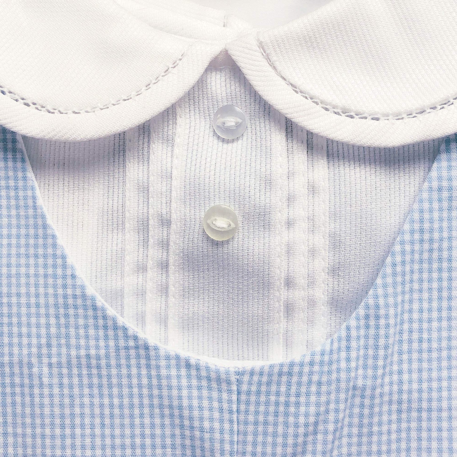 - Q: What is the design of the romper? A: The romper has a traditional design with a gingham pattern, giving it a timeless appeal.