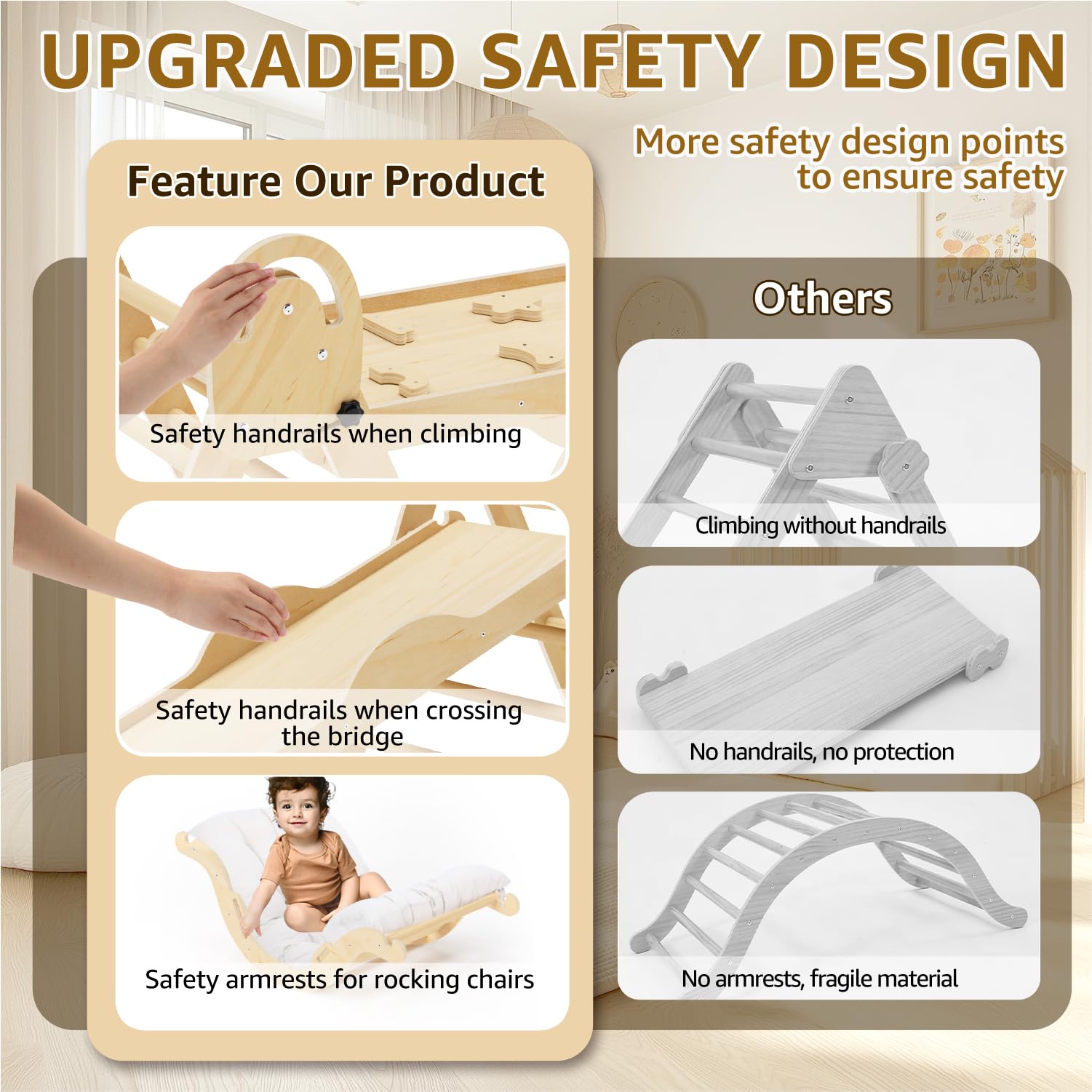 - Q: Can this set be used outdoors? A: The Pikler Triangle Set is primarily designed for indoor use to ensure safety and stability during play.