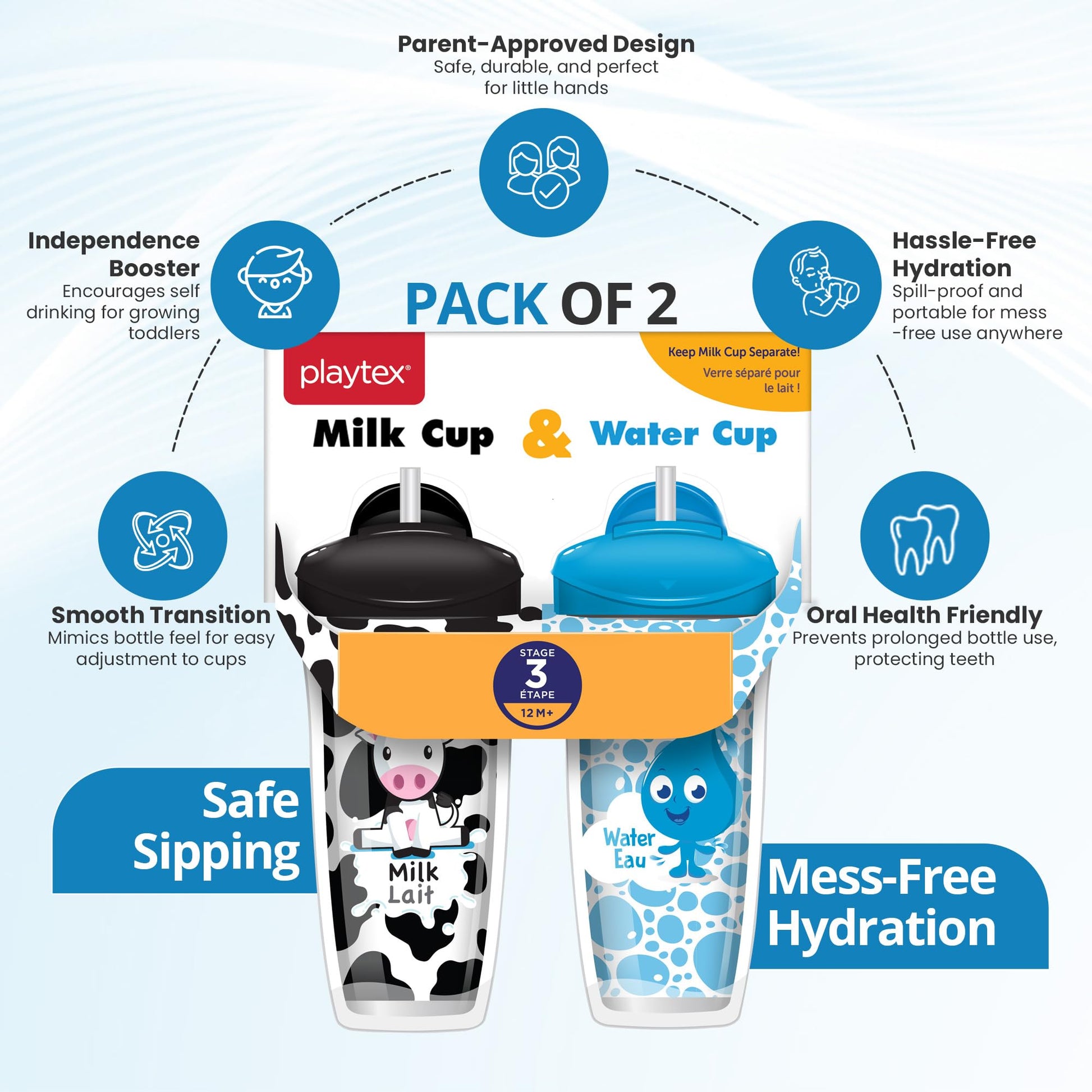 - Q: What is the capacity of the Playtex Sipsters Stage 3 cups? A: Each cup has a capacity of 9 ounces, making them suitable for milk, water, or juice.