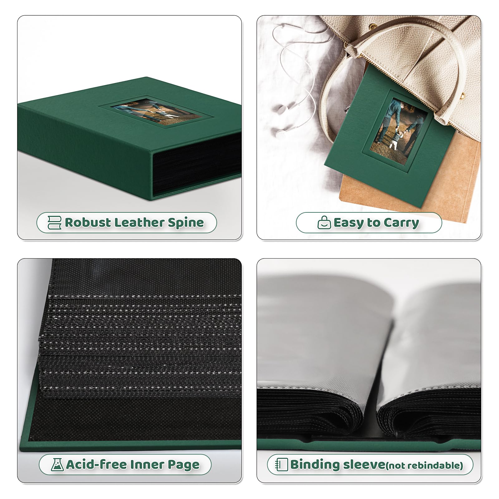 • Q: Is the inner material safe for photos? A: Yes, the inner pages are made of acid-free material that is HD transparent and does not yellow over time, ensuring your photos are preserved.