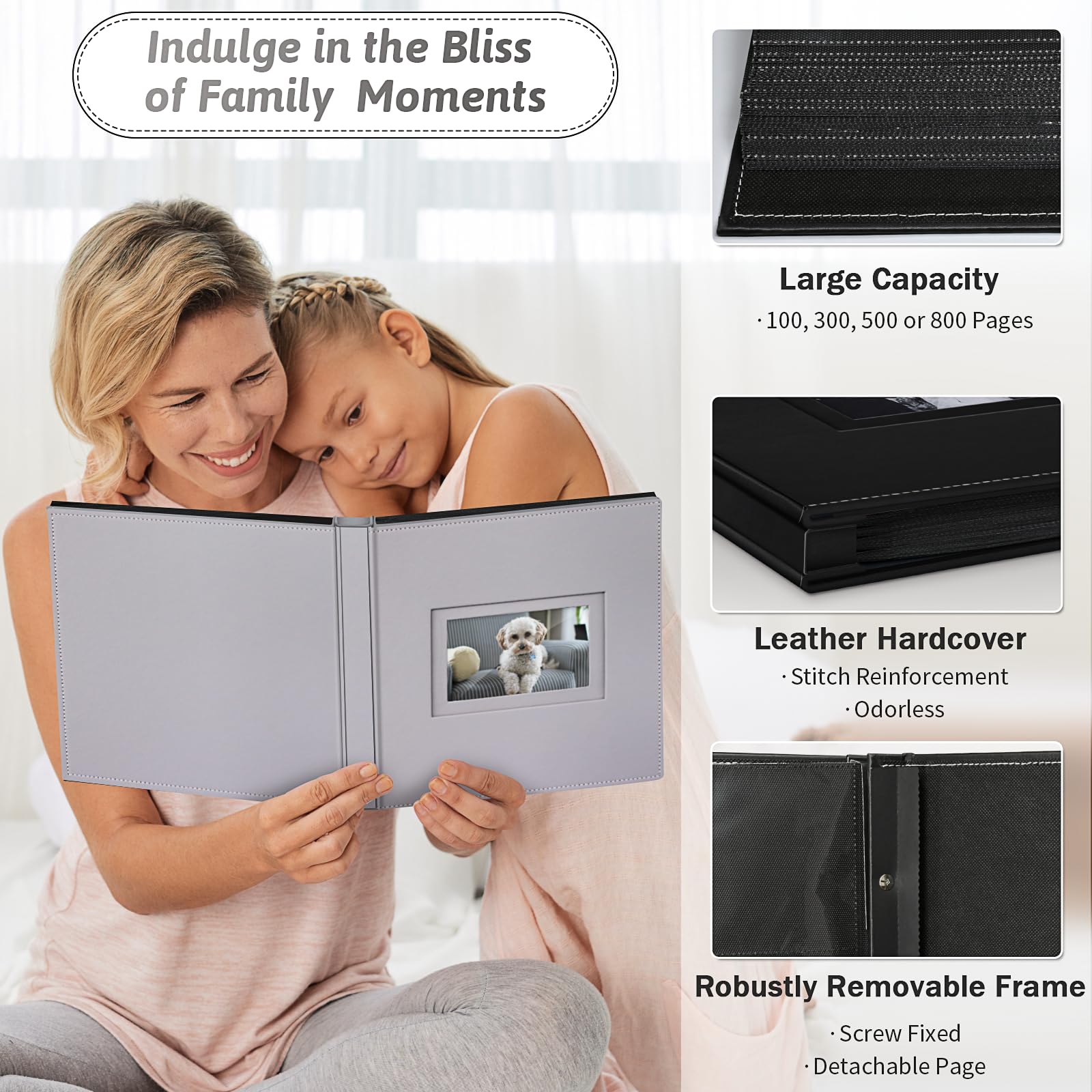 - Q: Can I customize the front of the photo album? A: Yes, the photo album features a DIY front window that can hold a 4x6 photo, allowing you to showcase your favorite moments.