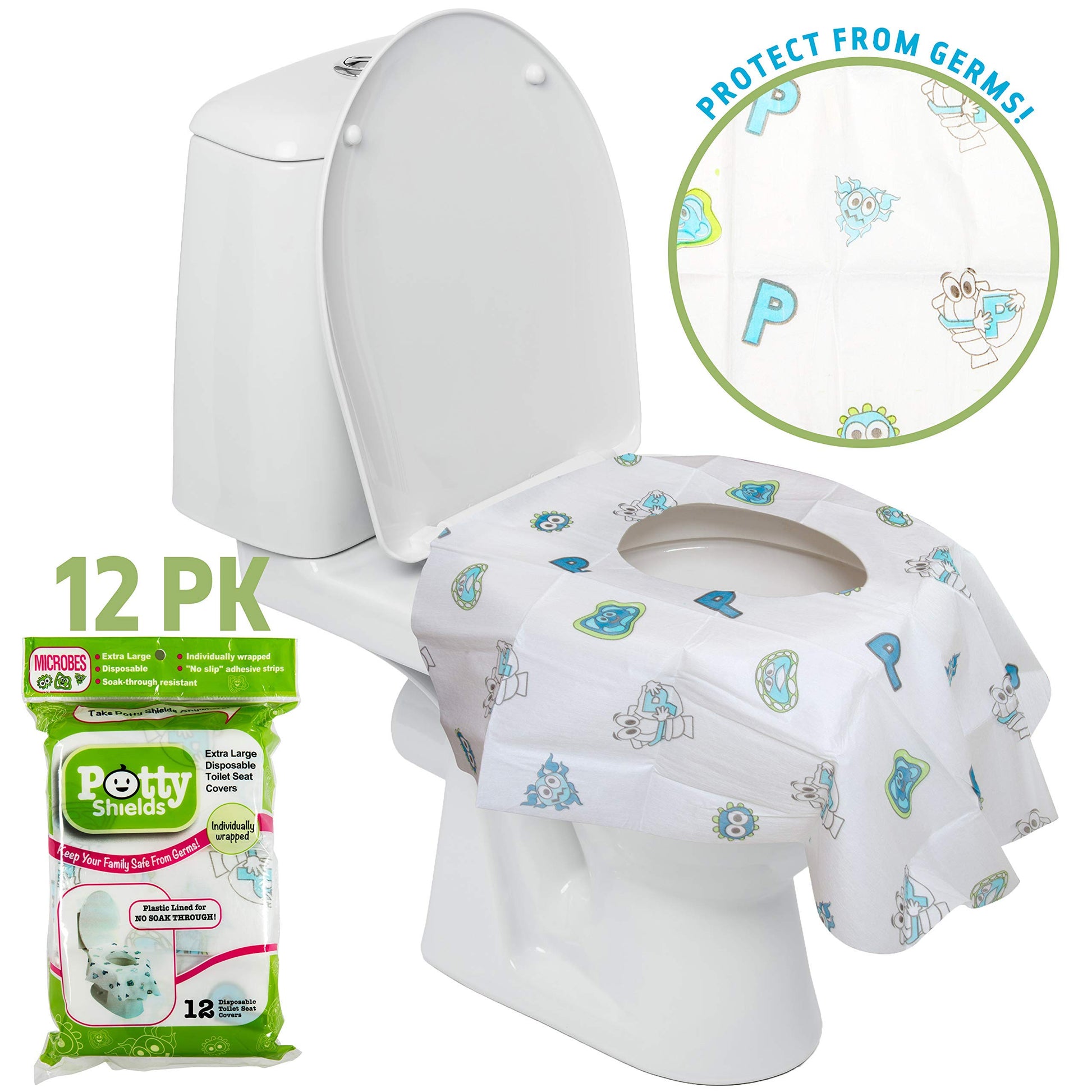 - Q: What sizes do the Potty Shields Toilet Seat Covers come in? A: The Potty Shields Toilet Seat Covers are EXTRA large, providing full coverage to protect users of all ages, including toddlers, kids, and adults.