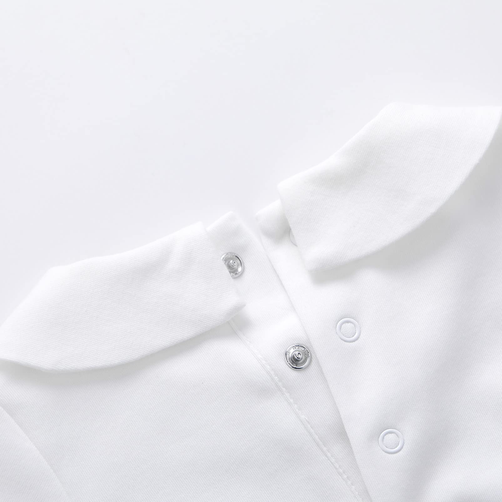 - Q: Does the bodysuit come in other colors or styles? A: This specific bodysuit features a solid white color with a sweet Peter Pan collar, but other styles may be available in the full collection.