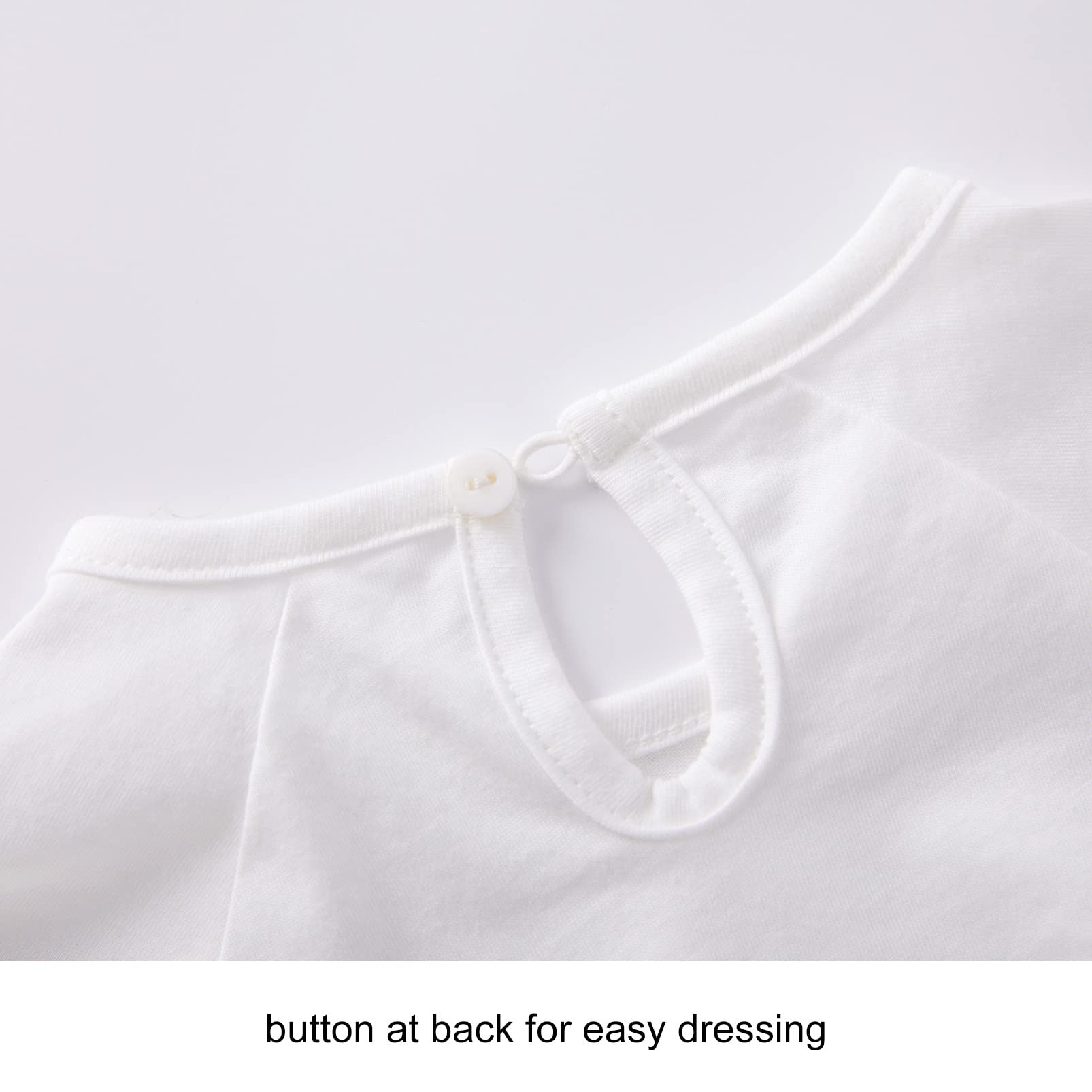 - Q: Does this bodysuit have any special design features? A: Yes, it features a crew neck, raglan sleeve style, short ruffle sleeves, and a ruffled elasticized leg opening, making it an adorable outfit for various occasions.