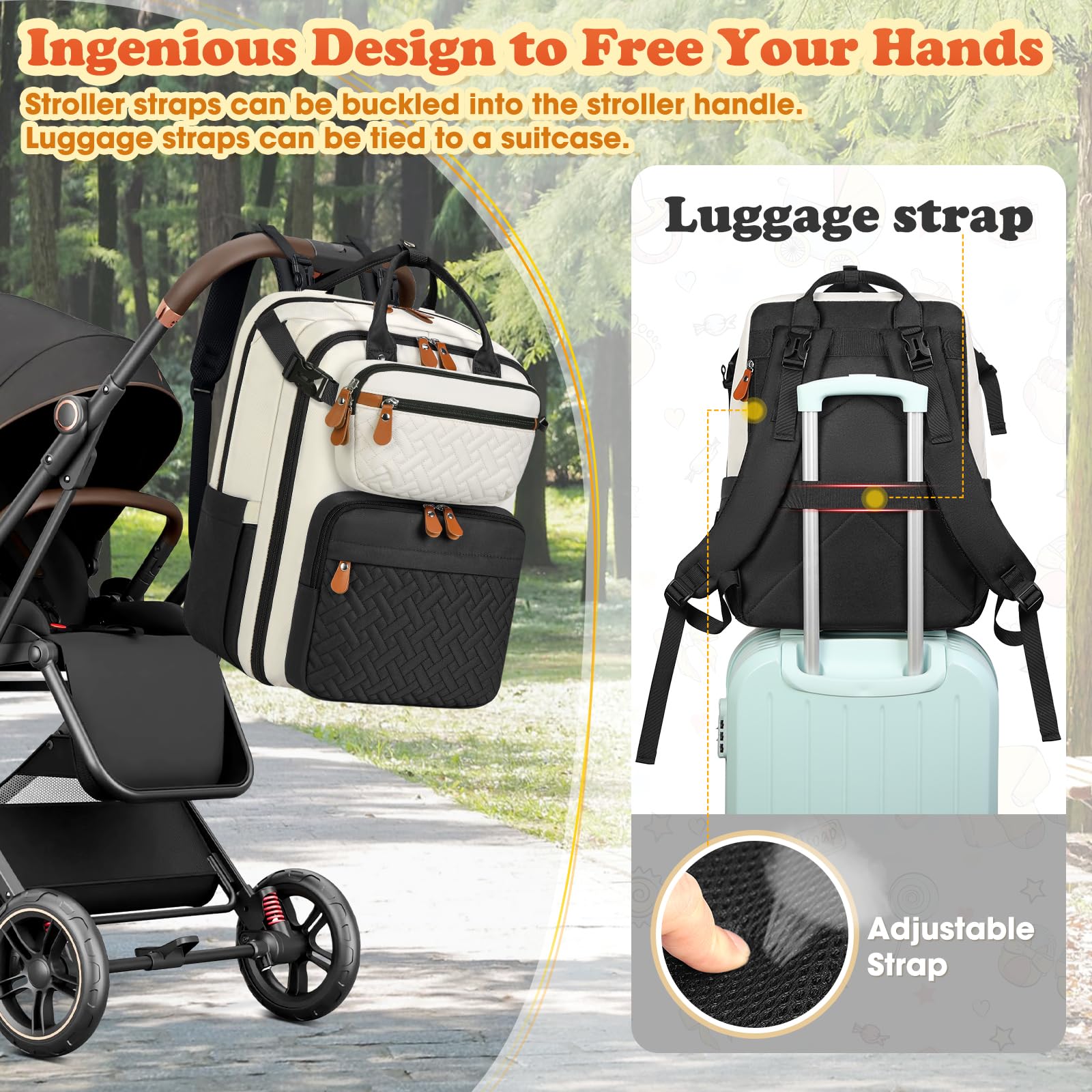 - Q: Can this bag be used for travel? A: Absolutely! The RAINSMORE Diaper Bag Backpack includes stroller straps and luggage straps, making it ideal for travel, picnics, daycare, and everyday use.