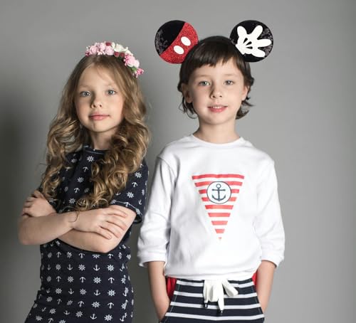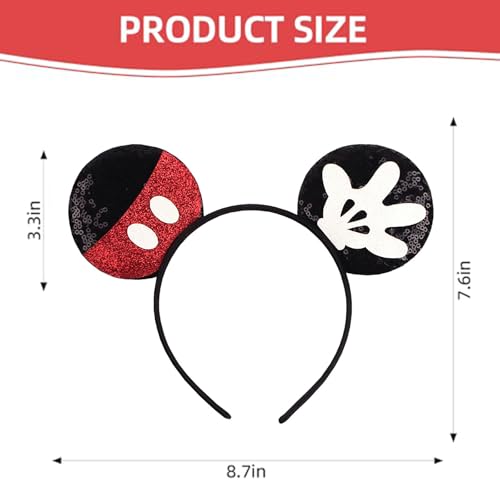 Features 1. The Mice ears headband is equipped with high quality material mouse ears. Much more beautiful than similar products. 2. The pictures were taken by myself. Because of the reflection on the sequin ears the pictures can't show the real products, the product is much more beautiful than pictures. 3. Suitable for many occasions such as Disney trip, Halloween,baby shower, Christmas, birthday party or Minnie&Mickey themed party, etc. It will attract the attention of others in any occasion. Item : Headband Style : Mouse Style ears on a comfortable headband Material : The Plastic Headband is covered with satin which is more comfortable, with 3.5' Sparkle Ears and 5 bow Package: 1 pcs of Mouse Ears Headband . These cute mouse ears headband suit for both adults and children, women and men, boys and girls.