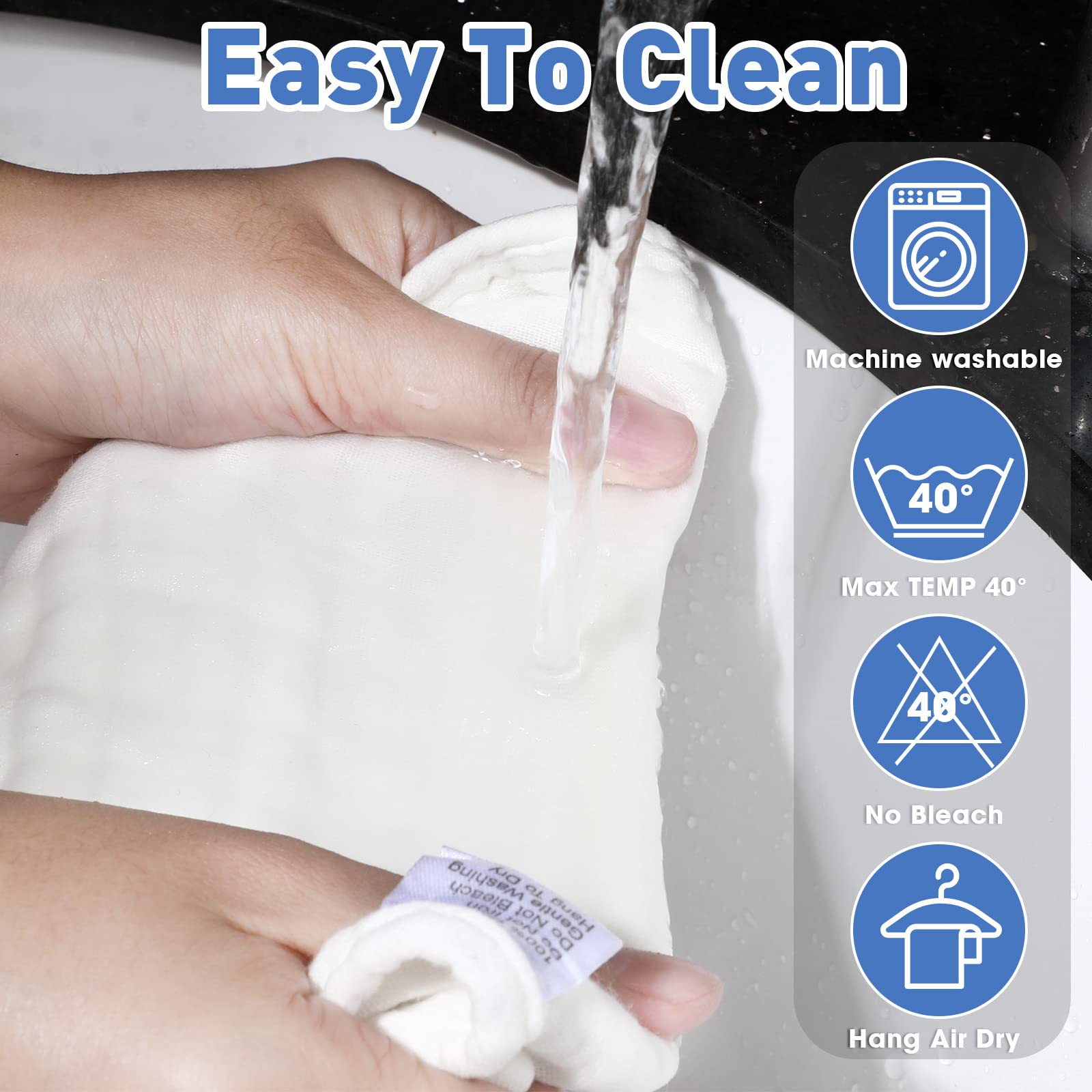 - Q: How do I care for the muslin bibs? A: For best results, machine wash the bibs in cold water and air dry or tumble dry on low. Avoid using bleach.