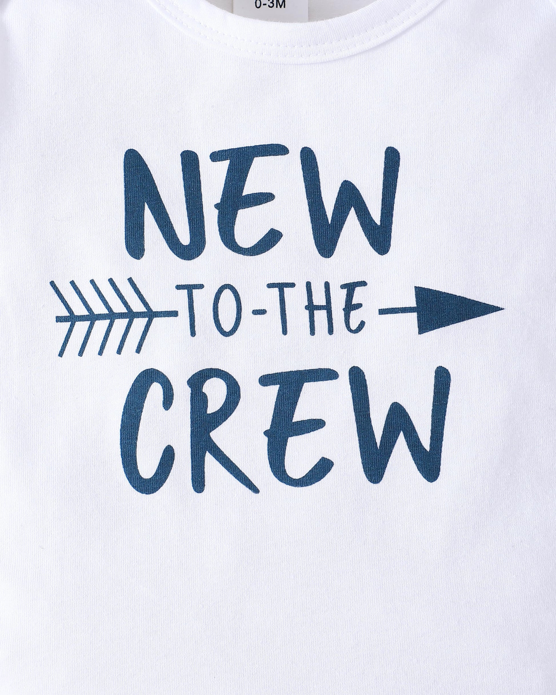 - Q: What is the design of the Renotemy Baby Boy Summer Clothes? A: The outfit features a stylish design with a 'New to The Crew' print, a classic romper shape, and wide elastic waistband pants for a comfortable fit.