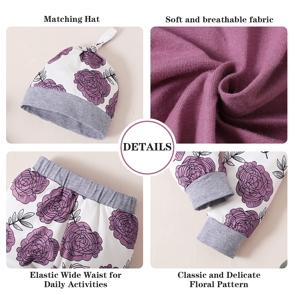 - Q: What does the outfit include? A: The outfit includes a long sleeve ruffled romper bodysuit, floral pants, and a matching bowknot headband, making it a complete 3-piece set for your baby girl.