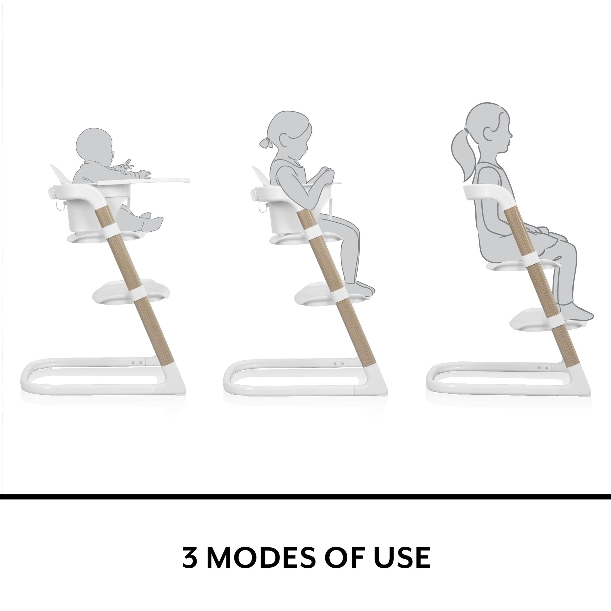 - Q: How does the high chair adjust for different stages? A: This high chair offers three modes: Infant Mode for infants with a tray, Toddler Mode for dining at the table, and Youth Mode for bigger kids who can sit on their own.