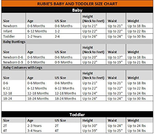 - Q: How should I choose the size for the costume? A: It is important to consult Rubie's Baby size chart before selecting a size, as you should not choose based on clothing size or age.